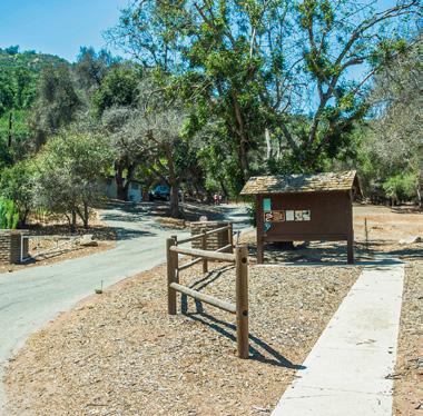 Historic park with shade trees and access to the Ojai Valley Trail.
