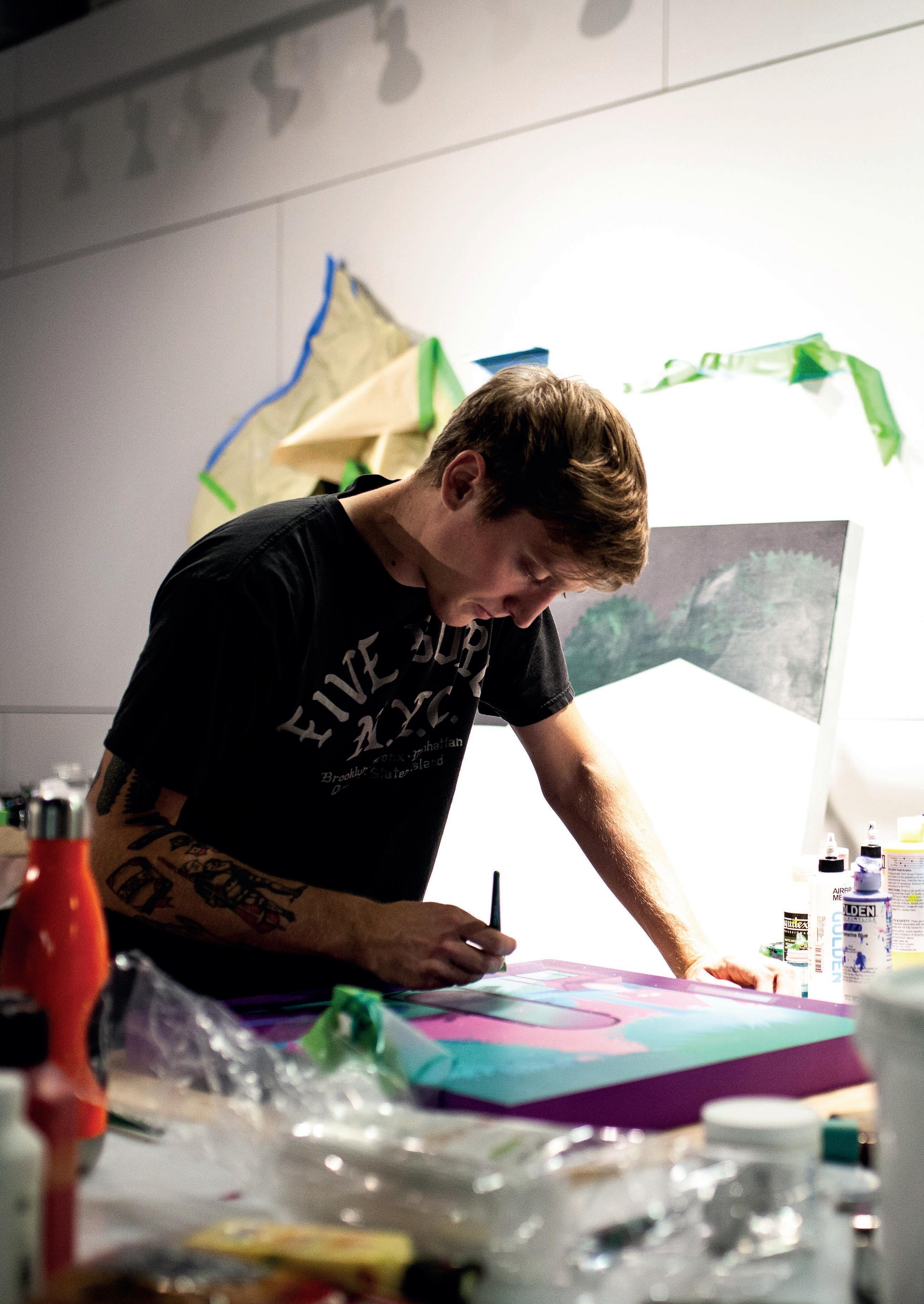 Michael Polakowski (1994) utilizes acrylic paint and airbrush techniques to create stylistically abstracted and dreamy landscapes. Based in Detroit, Michigan, he draws strong inspiration from his surroundings. His work has garnered attention from publications such as Juxtapoz, New American Painting, and booooooom. In 2024, Polakowski will participate in an artist residency at the Vermont Studio Center.