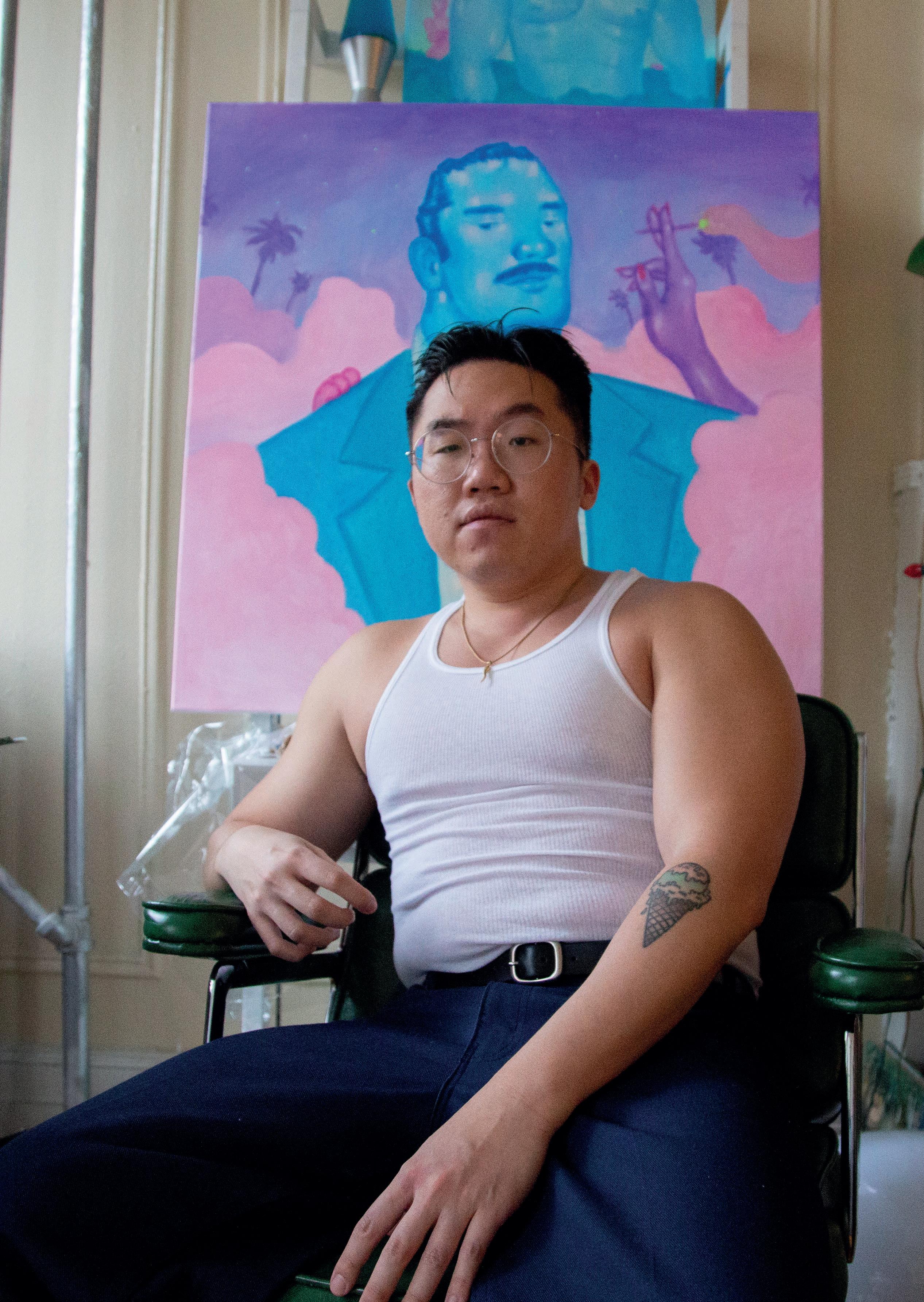 "I wanted to explore more of an idealized idolatry of what could have been for Asian queer representations. A phantom of an image, morphed with my own memories of self intimacy and blurry milestones in my life. I aimed to capture that haunting feeling you get when it becomes winter, where you feel like your past, and your imagined fantasy of nostalgia mixes together, as you yearn for another turn of season, another growth. As I am chasing those phantomous imagery, the phantoms of our past also chase us, both romantically and melancholically.”