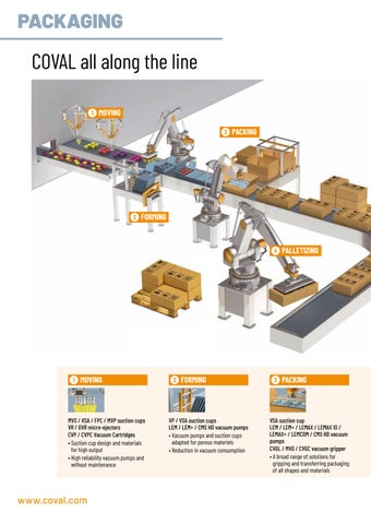 For more than 35 years, COVAL has developped ranges of vacuum pumps and suction cups which enable you to grip and move products, as well as, primary and secondary packaging of all shapes, weights and materials, on production and packing lines.