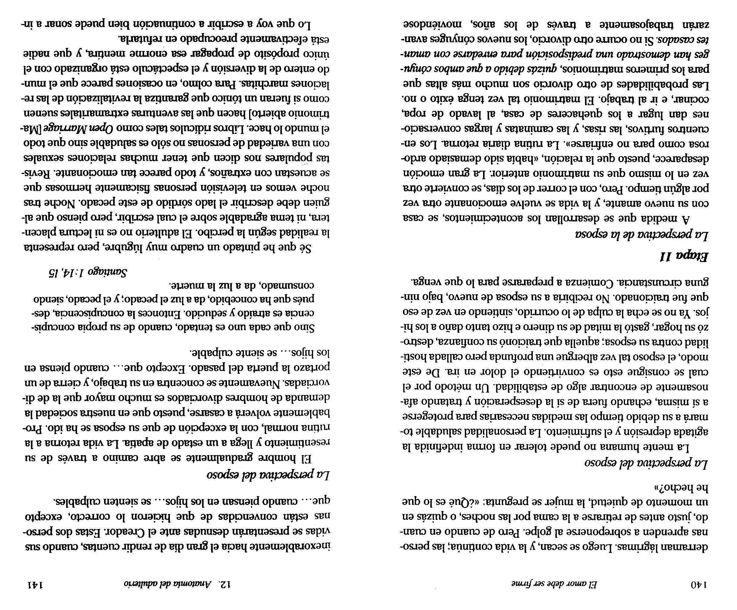 Los conceptos que voy a compartir con usted tienen incluso una aplicación mucho más amplia que la intemcción entre esposos. Como veremos, también son pertinentes a todas las relaciones humanas, incluso a las relaciones entre empleados y patronos, padres e hijos, pastores y feligreses, empresarios y obreros, guardias y prisioneros, norteamericanos y rusos, y toda otm categoria de personas que tienen que relacionarse en algún momento. En otres palabras, describiré en los capítulos siguientes lo que consideroconceptos universales, que atmviesan las barreras cultumIes, sexos, razas o circunstancias económicas.
