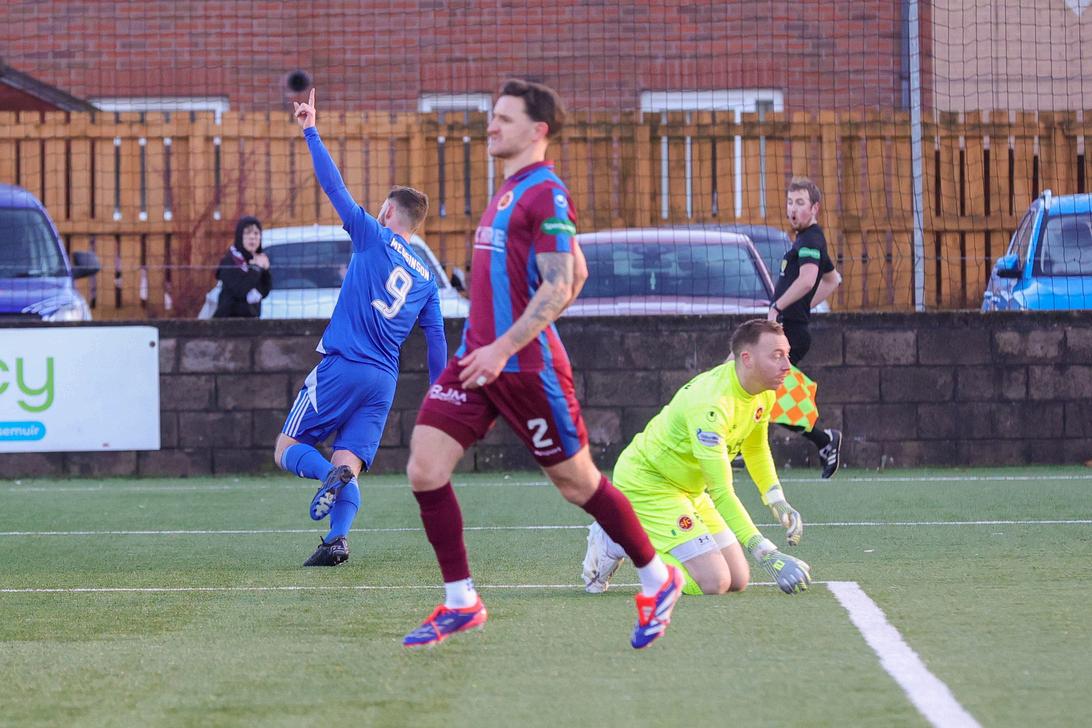 We made the breakthrough just before the half hour mark with a quality goal. Mikey Doyle looked up and sent a perfect long ball over the top for Emslie to run on to. Adam gathered deep inside the area before picking out Declan GLASS who cleverly flicked his shot beyond the despairing Jamieson.