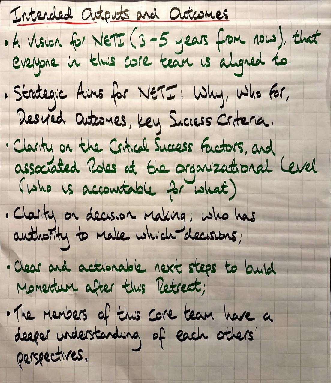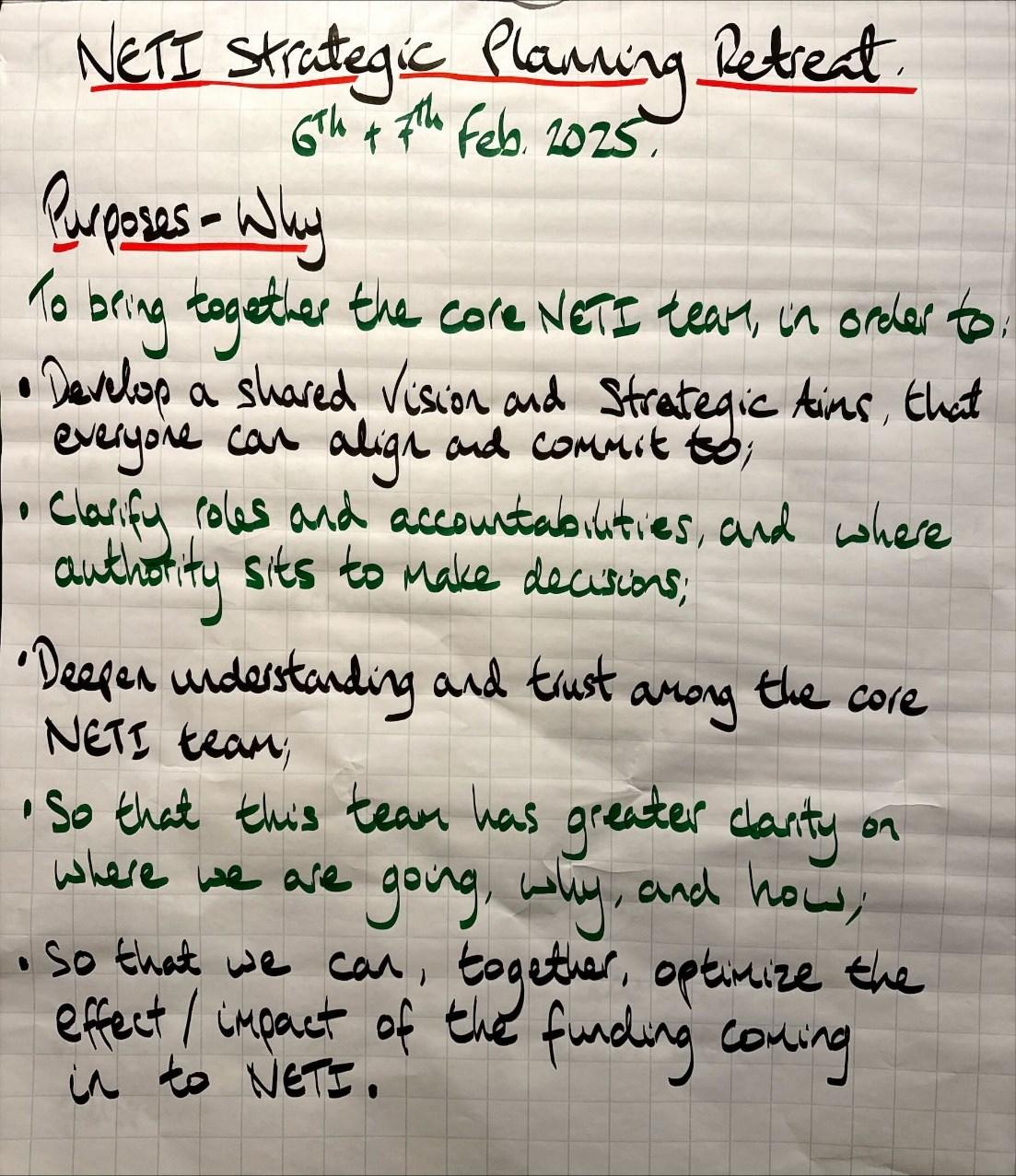 It was a true privilege to be in the room with you all as you opened up, shared, discussed, wrestled, and found your way to gaining greater clarity and alignment for NETI (at a strategic level).
