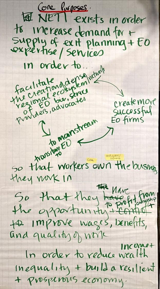 The personal purposes you shared dial directly in to the NETI Vision and Core Purposes that you evolved together. It makes perfect sense that you intentionally come together in order to reduce income and wealth inequality, and to build a resilient and prosperous economy. These words aren’t mine – they are your shared higher order purpose, and it’s so very worthy and highly compelling.