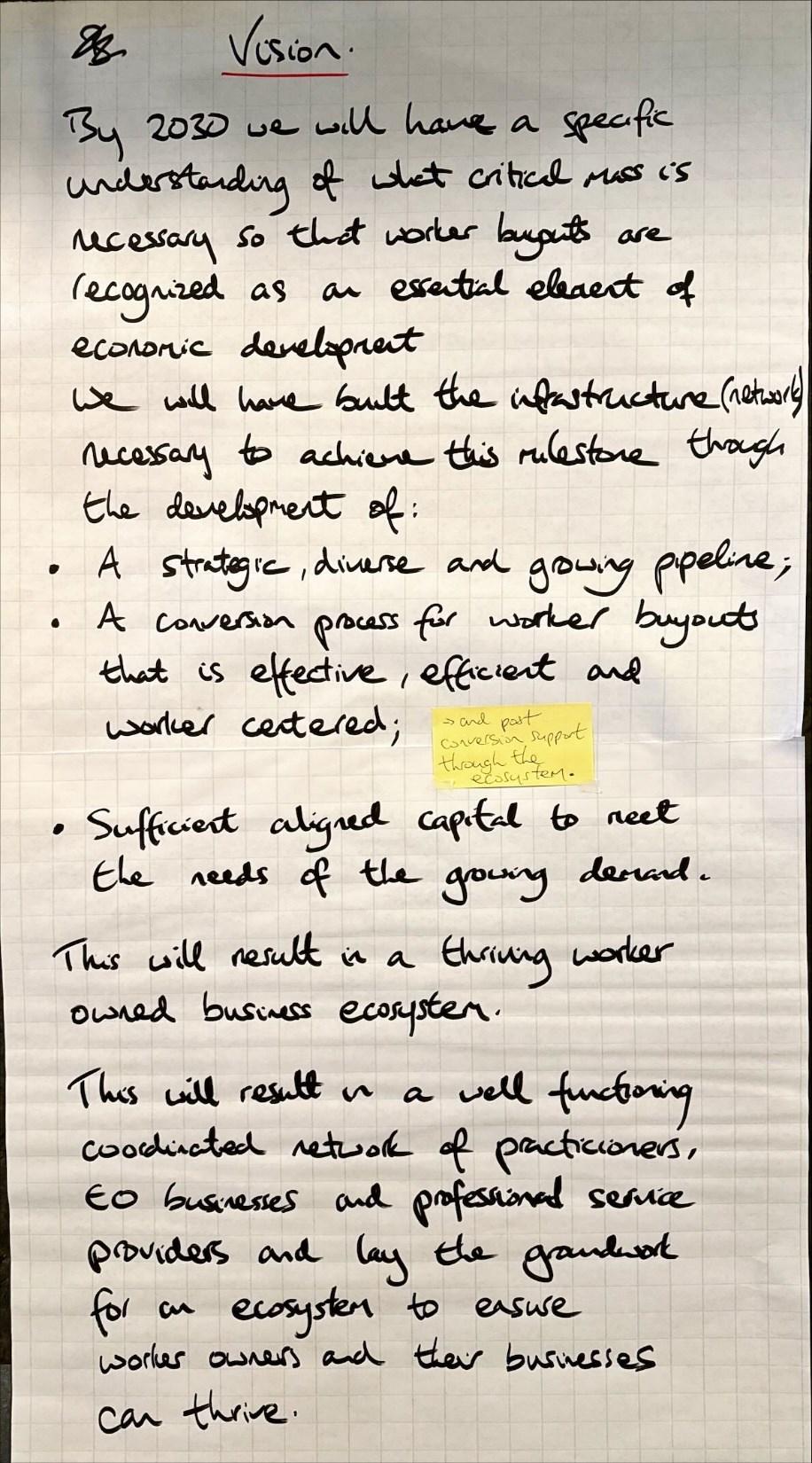 This will result in a well functioning coordinated network of practitioners, EO businesses and professional service providers, and lay the groundwork for an ecosystem to ensure worker owners and their businesses can thrive.