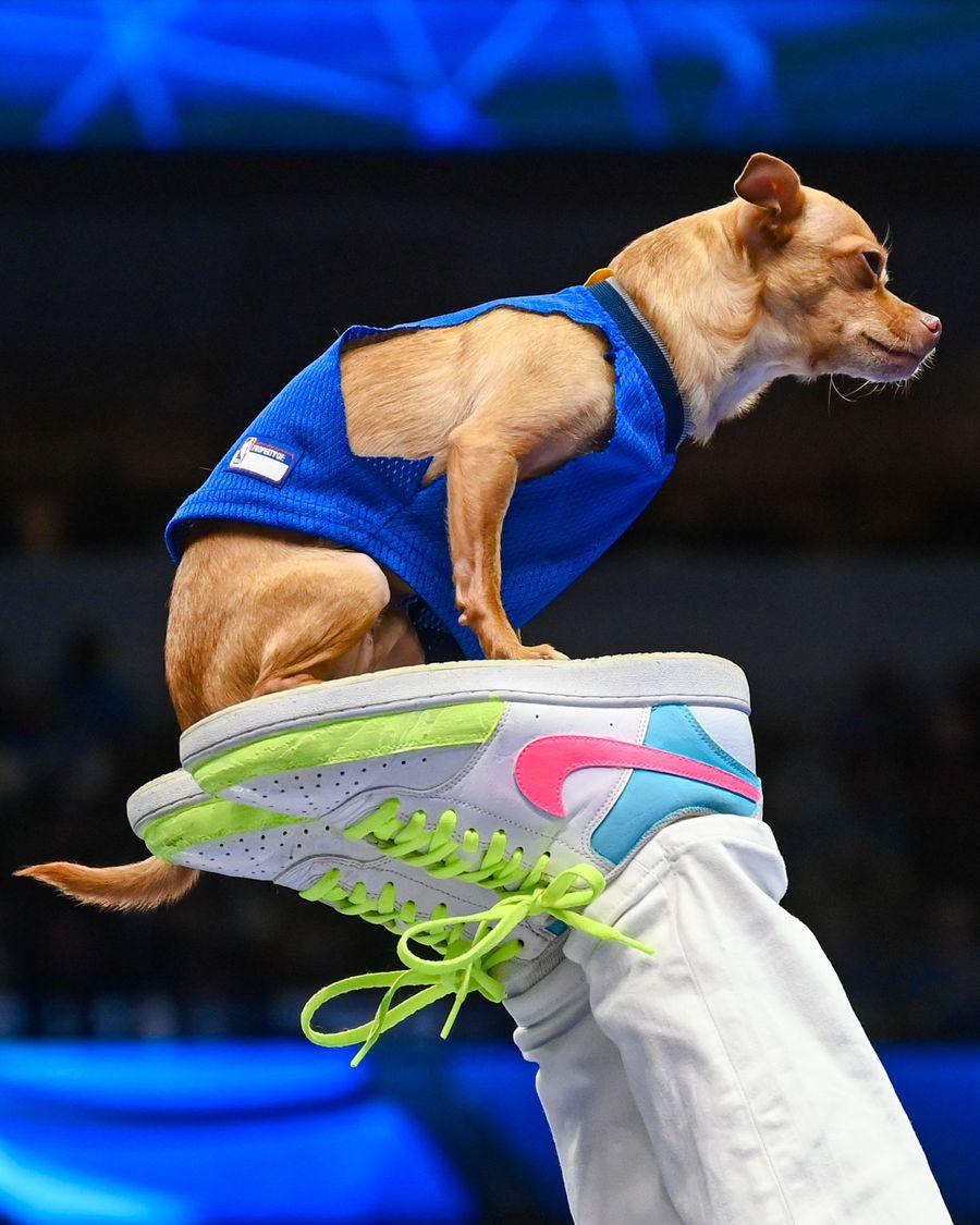 Christian: “Scooby is actually the stage name. It all began with my original Chihuahua, who was indeed named Scooby. Since then, Percy took over as ‘Scooby,’ and now Milo has taken on the role. Milo is currently six years old, and Percy is now retired at the age of twelve. They all learn at a different pace, but Milo picked up his basketball tricks pretty early. I’d say it took him about two years to learn most, if not all, of his routines.”