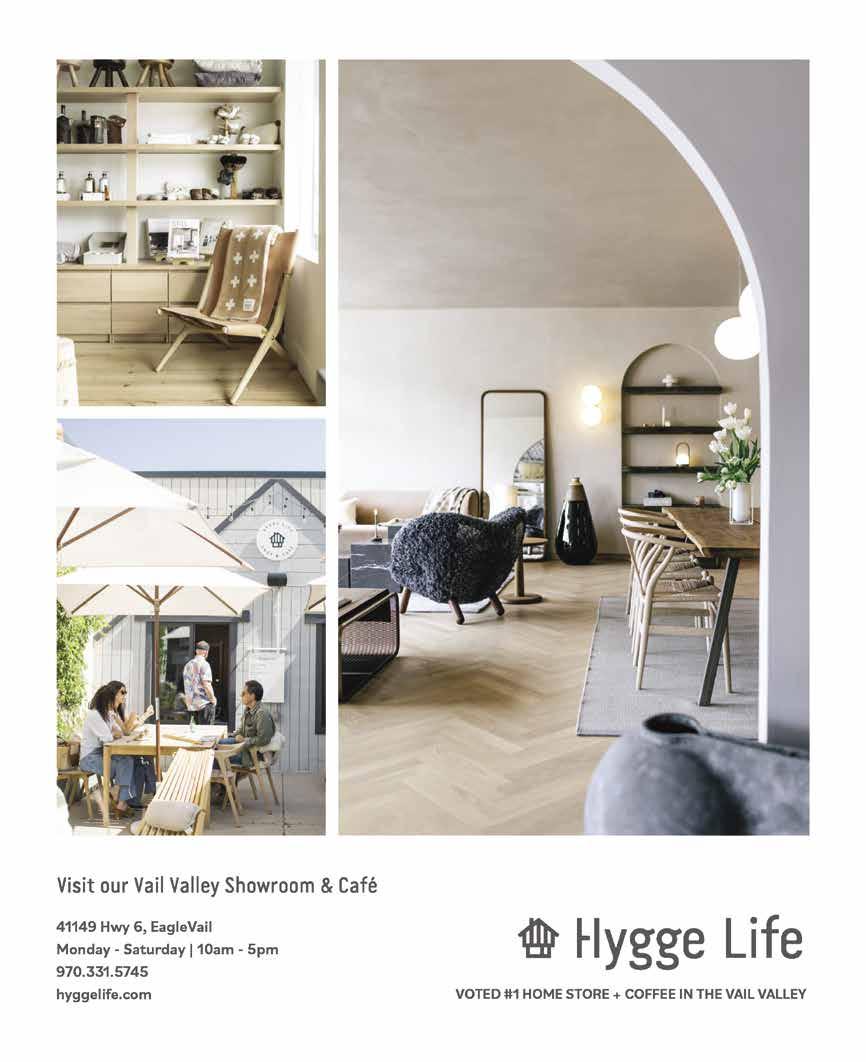 Home décor shop with a cozy craft coffee barand a collection of Scandinavian home goods, accessories and gifts. 41149 US-6, Avon 970.331.5745 hyggelife.com