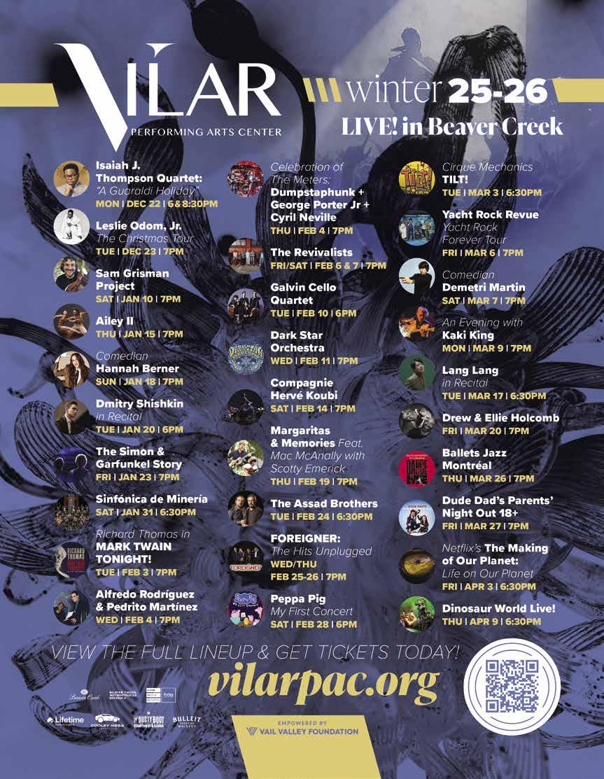 Get ready for legendary laughs. Comedy takes center stage as more than 30 comedians hit town for the Vail Comedy Festival across multiple venues with soldout crowds and endless laughs. vailcomedyfestival.com