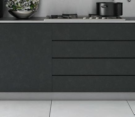 Matte black wooden doors will even give a new twist on the country kitchen look and a distressed finish can offer a beachy vibe – even in this dark shade.