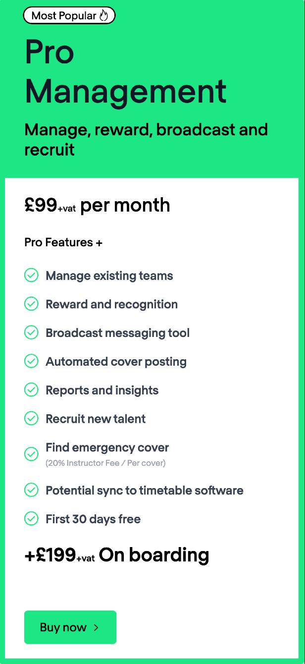 On a mutually agreed date, each venue will be made live on the system and instructors can start posting and receiving cover requests. The whole onboarding process takes approximately 10 days from start to finish.