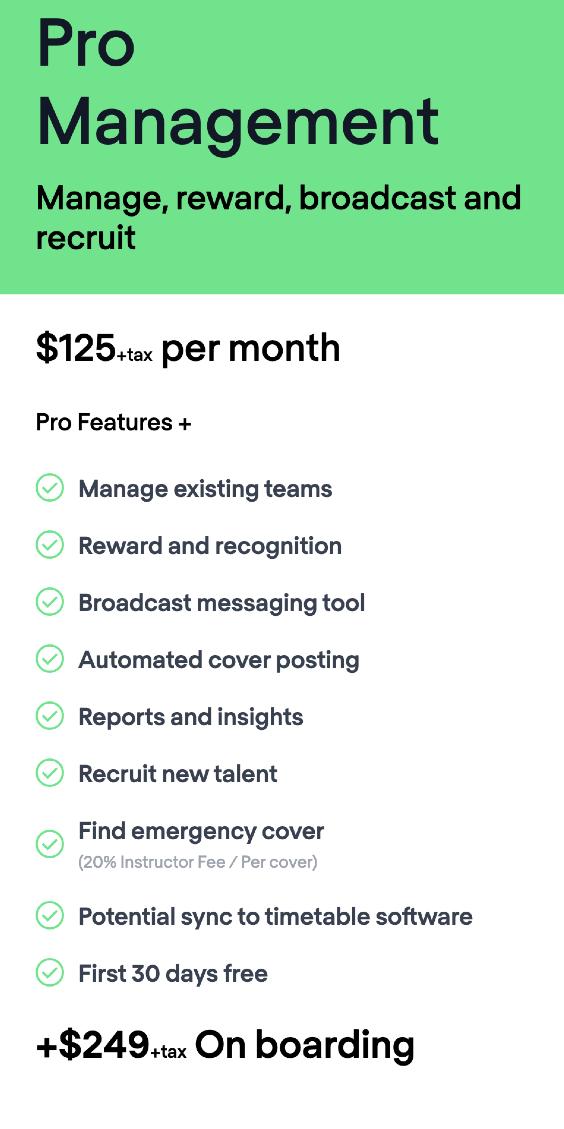 On a mutually agreed date, each venue will be made live on the system and instructors can start posting and receiving cover requests The whole onboarding process takes approximately 10 days from start to finish