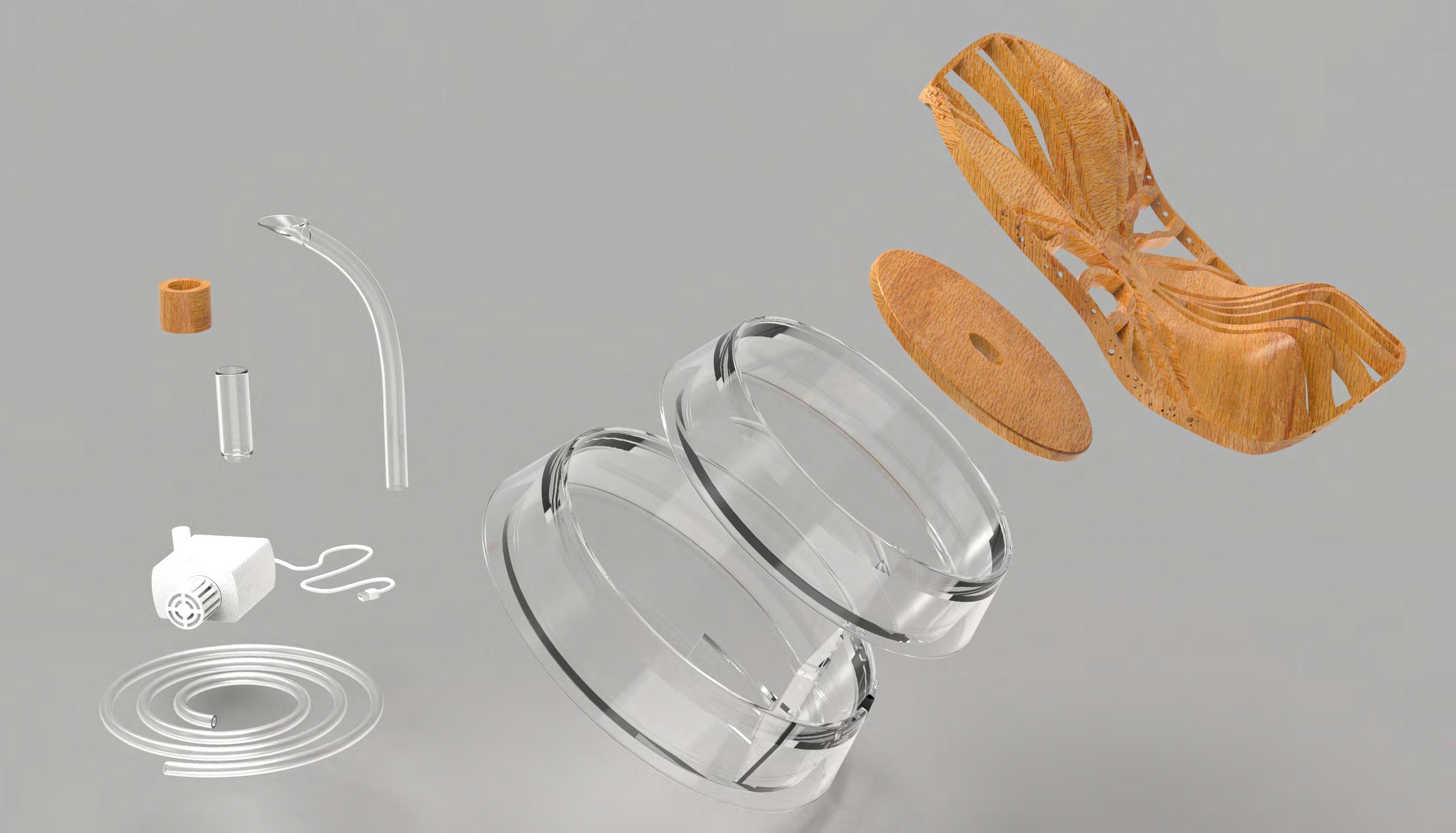 A hydroponic system made to reduce stress in millennials in their daily life as well as keep their favourite plants thriving and nourished. Plant roots must be submerged in oxygen rich nutrient. A decorative ornament in the water for aesthetics and to keep user relaxed and focused in a nature atmosphere brought into the home.
