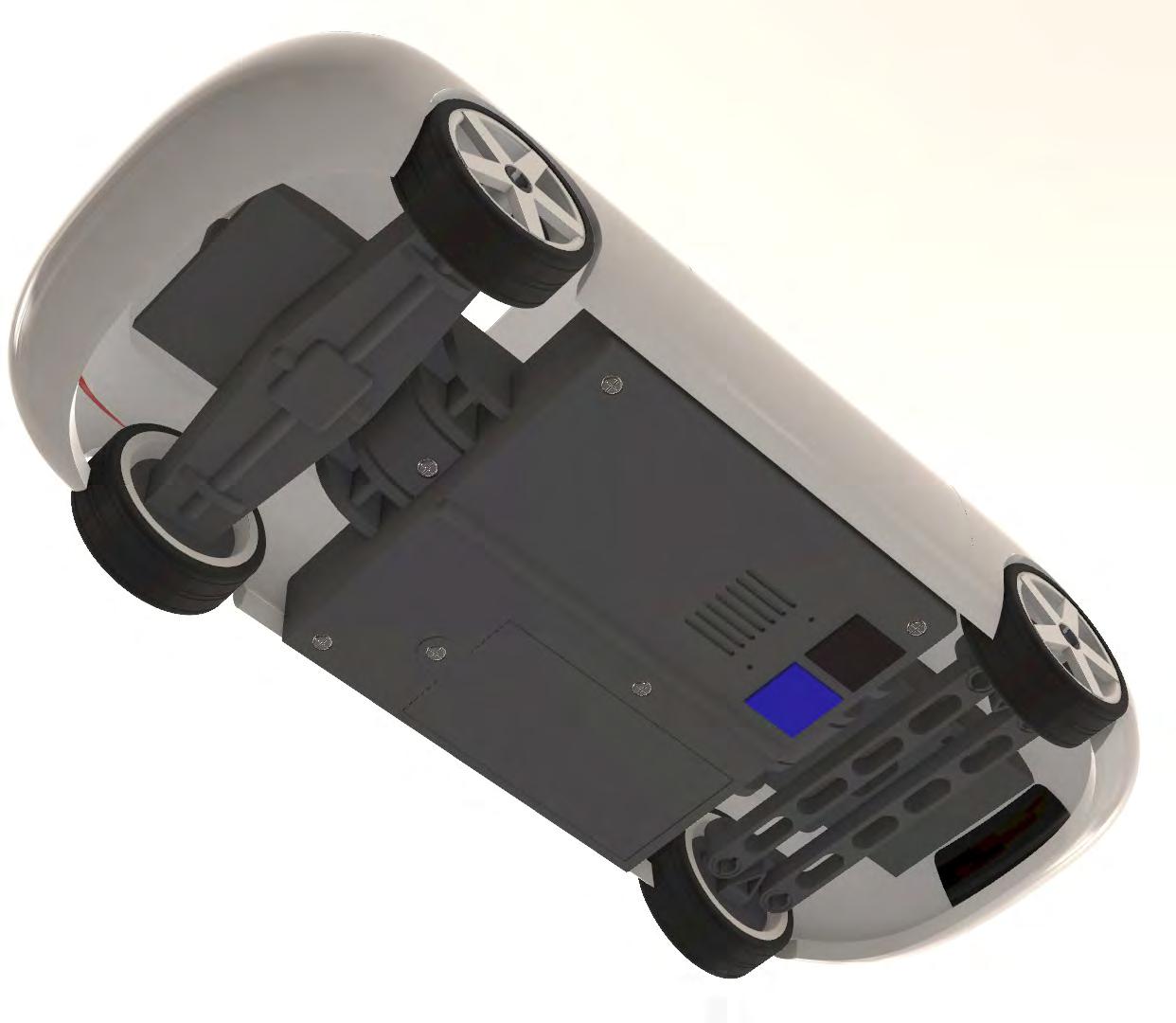 The base kit consists of a central chassis that contains electronic features that can activate lights in attached parts. Wheel axles connect below, while body and interior details connect around the outside. The parts provided can be disassembled for the child to build and customise using the parts from other kits. The completed model can be pushed by hand on a flat surface. A free app would be connected wirelessly to the fully assembled car that further enhances the play experience by remotely controlling a variety of visual features including lights and sounds.