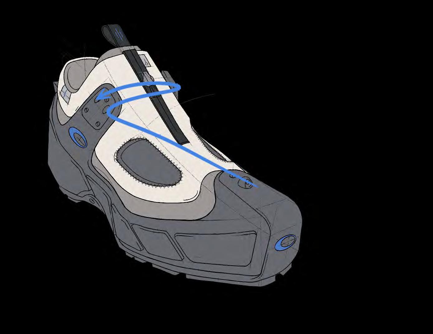 The final design is a three-in-one hiking and lifestyle shoe. The concept is driven by the need to reduce wastage in the shoe industry by combining a variety of functions into one long lasting design.