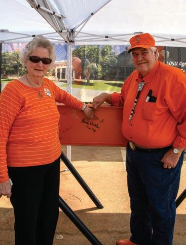 Each year, the Ferguson College of Agriculture hosts Homecoming festivities at the Charles and Linda Cline Equine Teaching Center. Top Left: Cynda Clary, associate dean. Top Right: Alumni awards. Second from Top Right: Matt Gard (left), Lisa Hand and Raylon Earls. Above: Tom G. Coon (left), vice president and dean; Lori Templin; Cody Hixon; Jake Chilcoat; Cynda Clary, associate dean; and Rick Reimer. Right: Mary (left) and Joe French. Photos by Hunter Gibson.