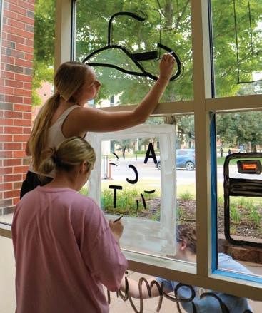 Left: Hoyt Nebgen (left) and Trinity Tisdale at Hester Street Painting. Second from left: Cade Jenlink, Ferguson College of Agriculture Student Council president, in the Sea of Orange Parade. Right: Kaytie Cash (left), Reese Gonsalves, Hailey Dinterman and Julia Sanderson during Window Painting.