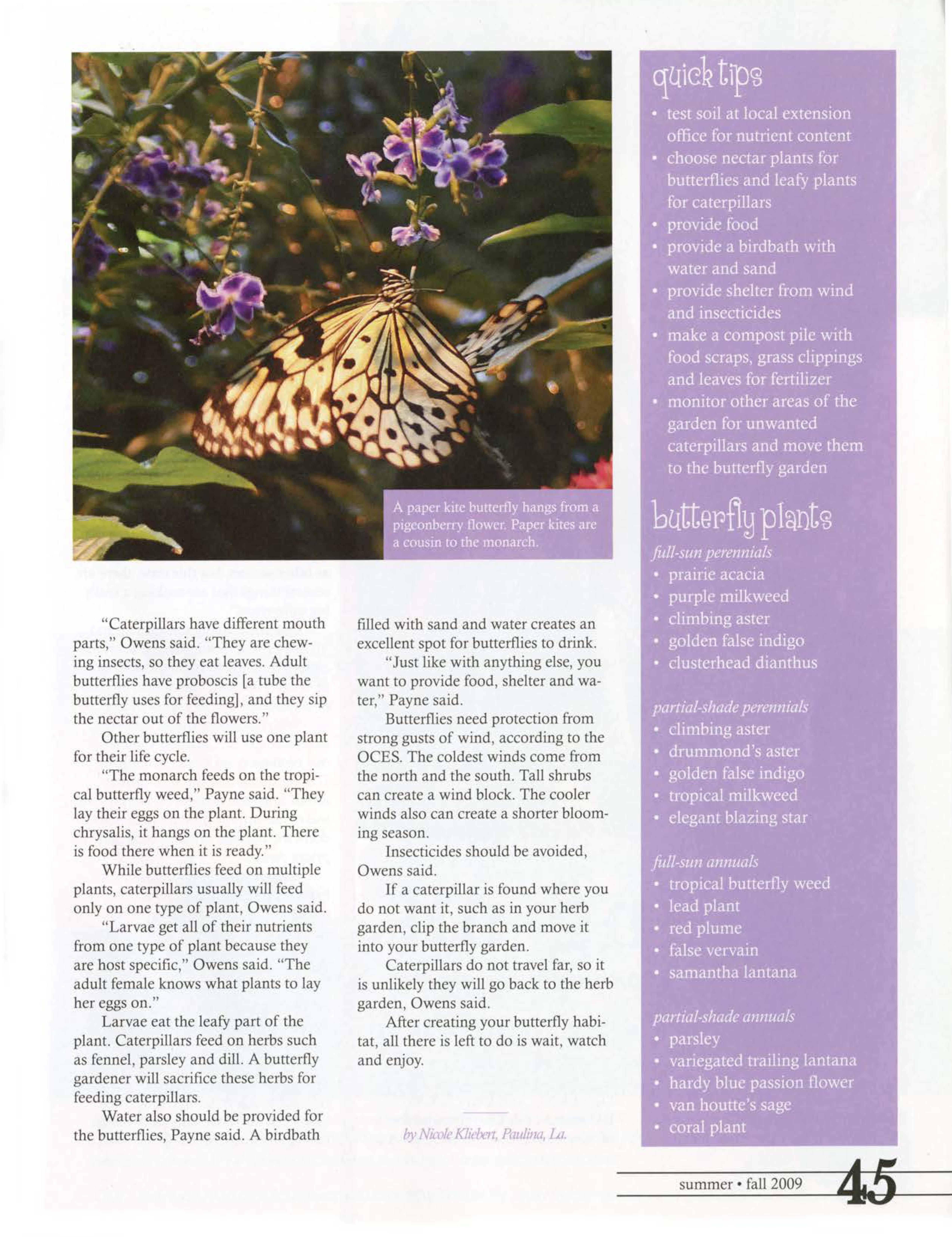 While butterflies feed on multiple plants, caterpillars usually wiU feed only on one type of plant, Owens said.