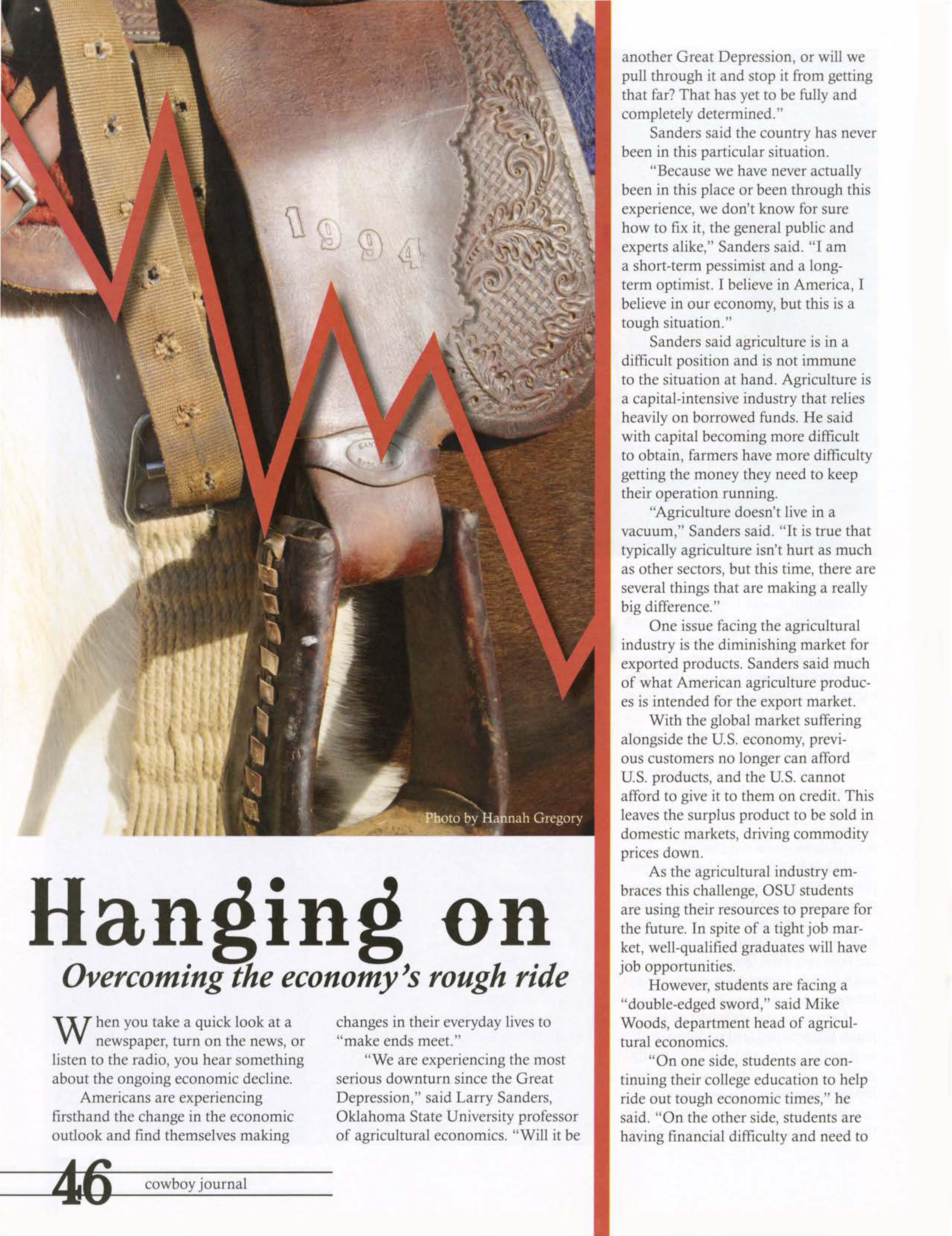 "We are experiencing the most serious downturn since the Great Depression, ' said Larry Sanders, Oklahoma State Univer ity professor of agricultural economics. "Will it be