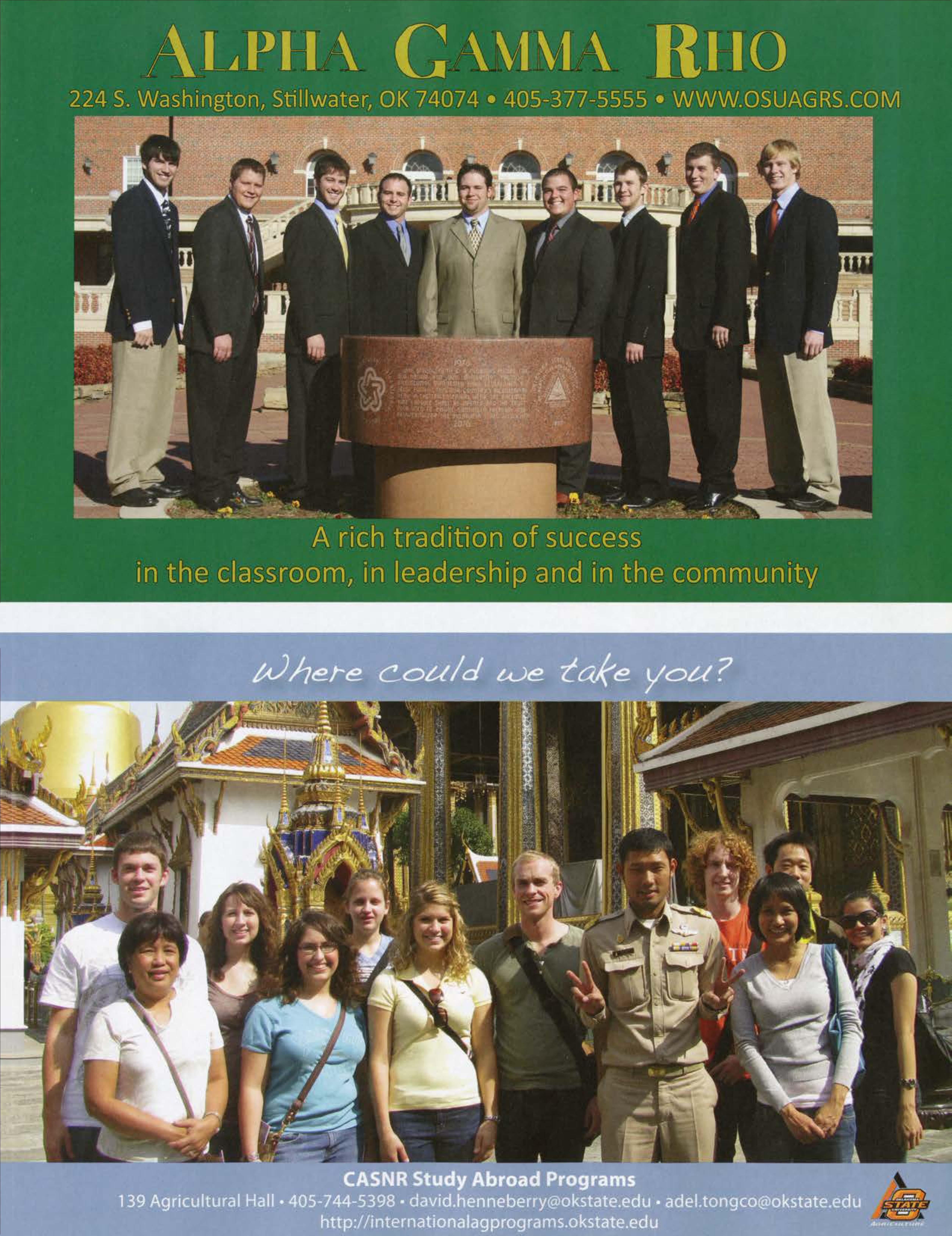 The Alumni Association looks forward to future tours, and invites alumni to participate in this year's trip. For more information, please call the College of Agricultural Sciences and Natural Resources office during business hours at 405-744-5395.
