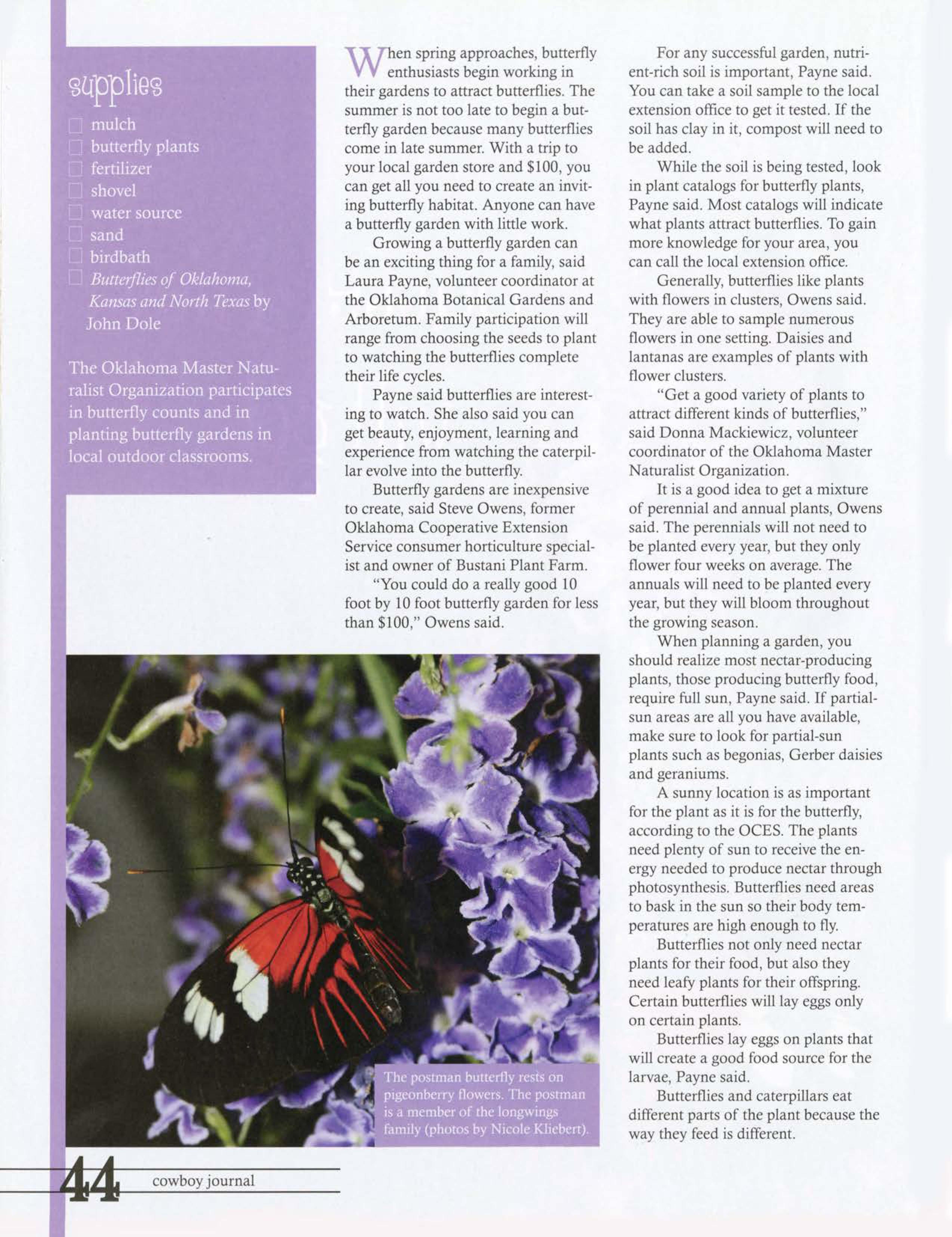 "Get a good varjety of plants to attract different kind of butterflies," said Donna Mackiewicz, volunteer coordinator of the Oklahoma Master Naturalist Organization.