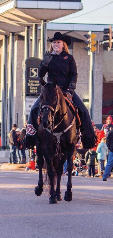 Spirit Rider Samantha Mitchell, an animal science junior, engages with the crowd during the 2013 Sea of Orange Homecoming Parade on Main Street. Photo by Samantha Stanbery.