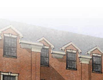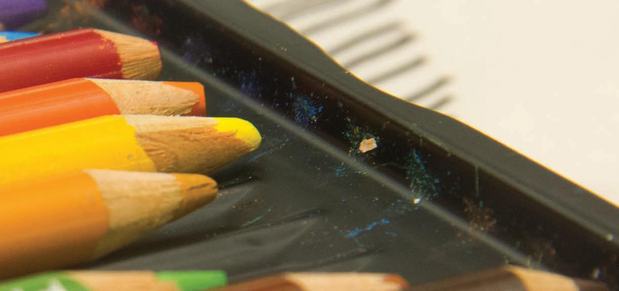 observes landscape architecture student James Hazzard’s design in the studio where students create their designs. Below: Pencils sit ready to bring students’ designs to life. Photos