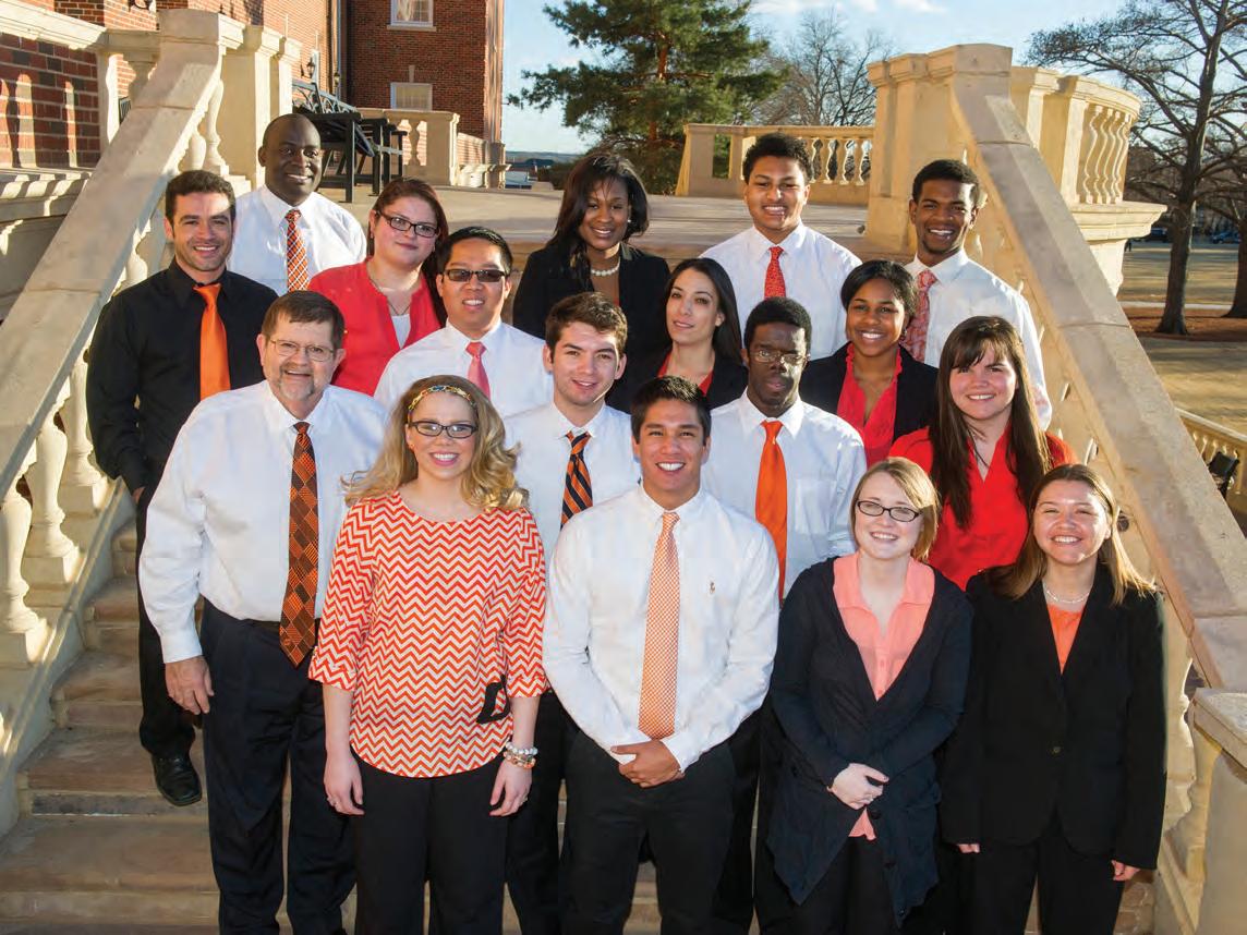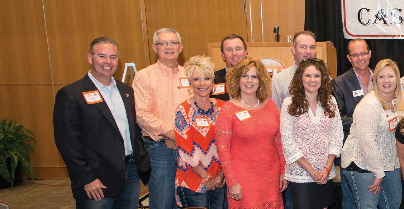 Current and former CASNR Alumni Board members attend the inaugural Spring Gala at the Conoco Phillips Alumni Center in 2014: Tresa Trammell (front left), Dana Bessinger, Mechelle Hampton, Shelly Ramsey, Jami Longacre, Shelly Sitton, Brian Vowell, Randy Waters, Sean Kouplen (back left), Barry Bessinger, John Cothren, James Ferrell, Kyle Hughbanks, Dave Hessel, Montie Box, Jason Harvey, Coleman Hickman and Don Roberts.