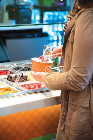 A student tries a variety of flavors and toppings while visiting Orange Leaf Frozen Yogurt. Photo by Michelle Helm.
