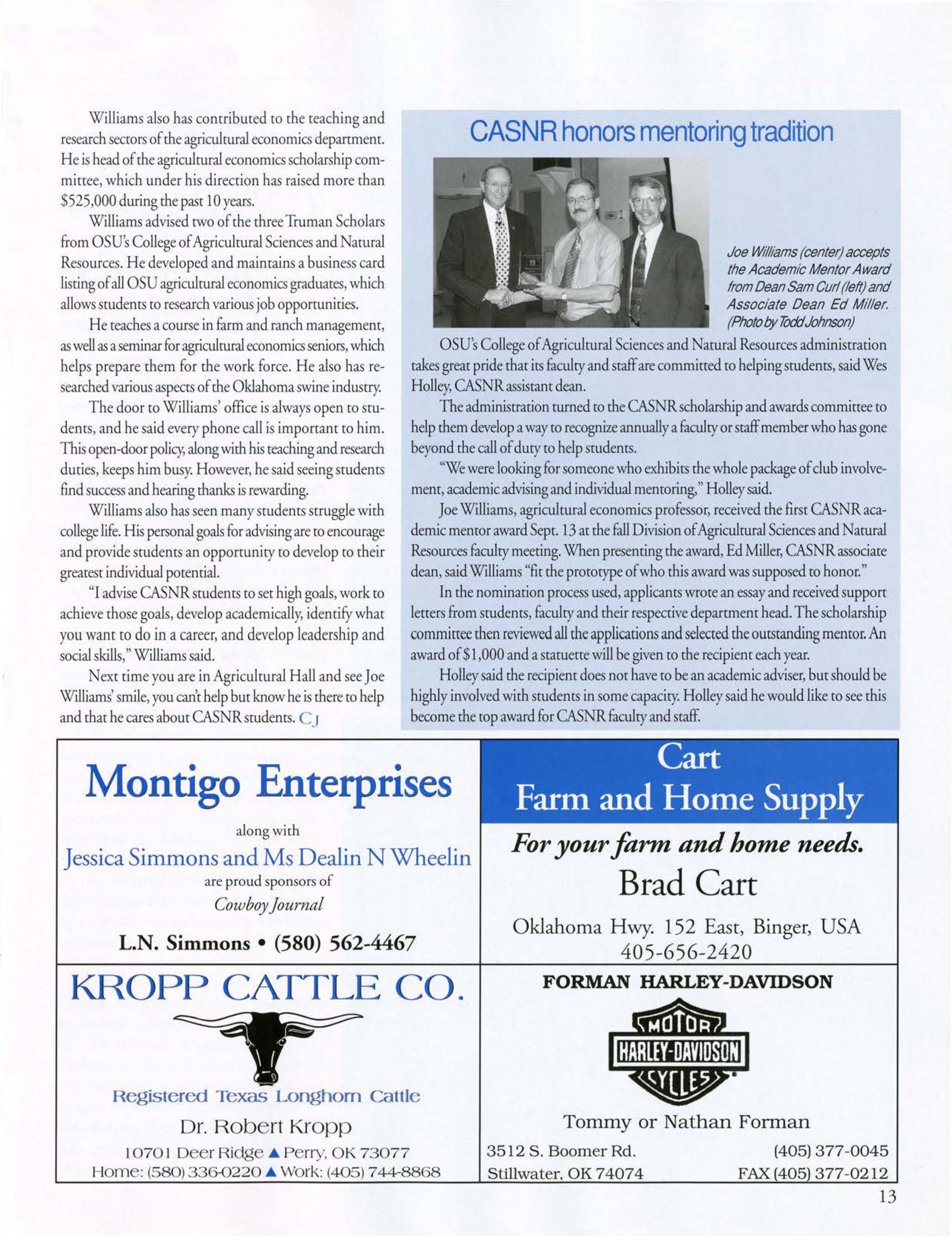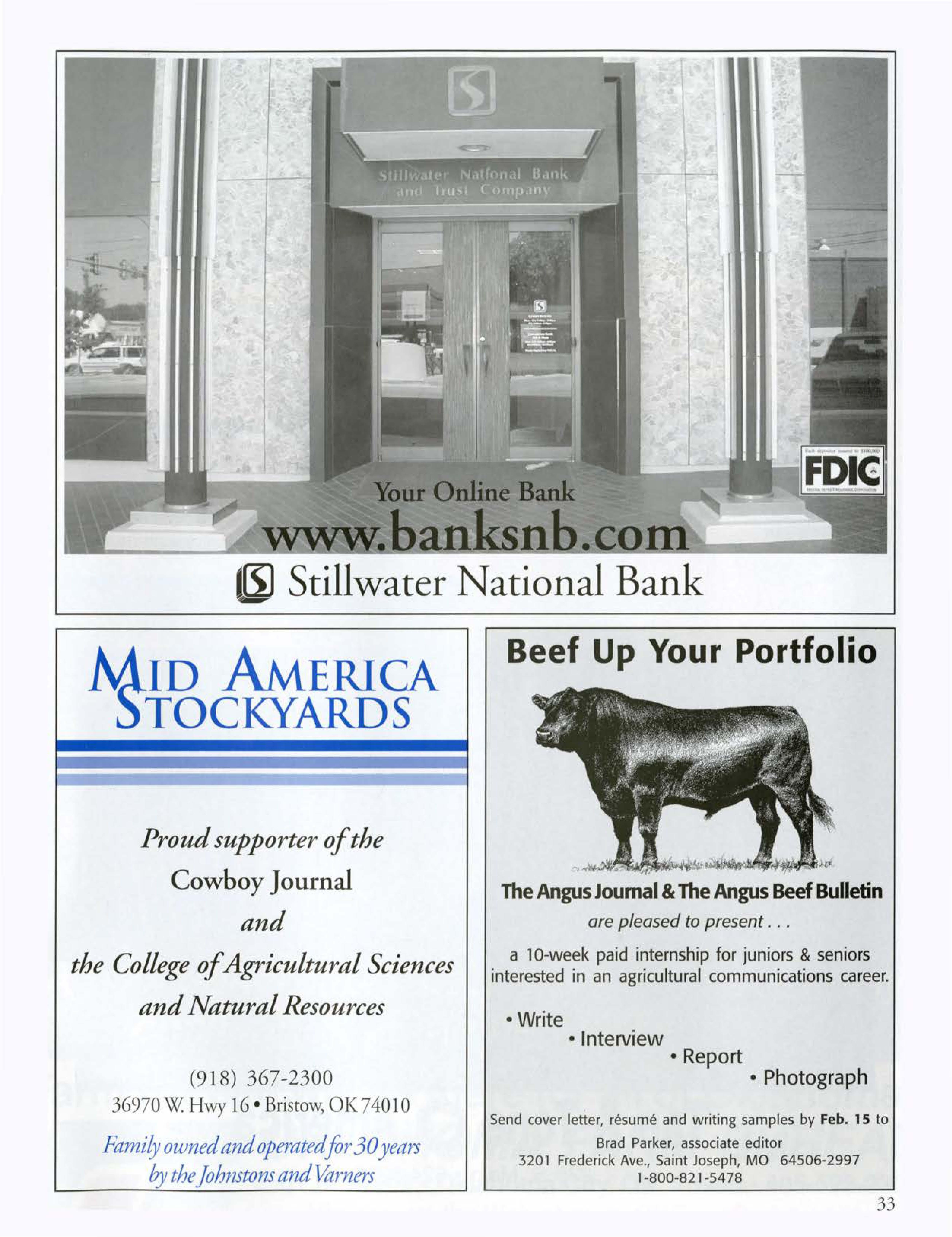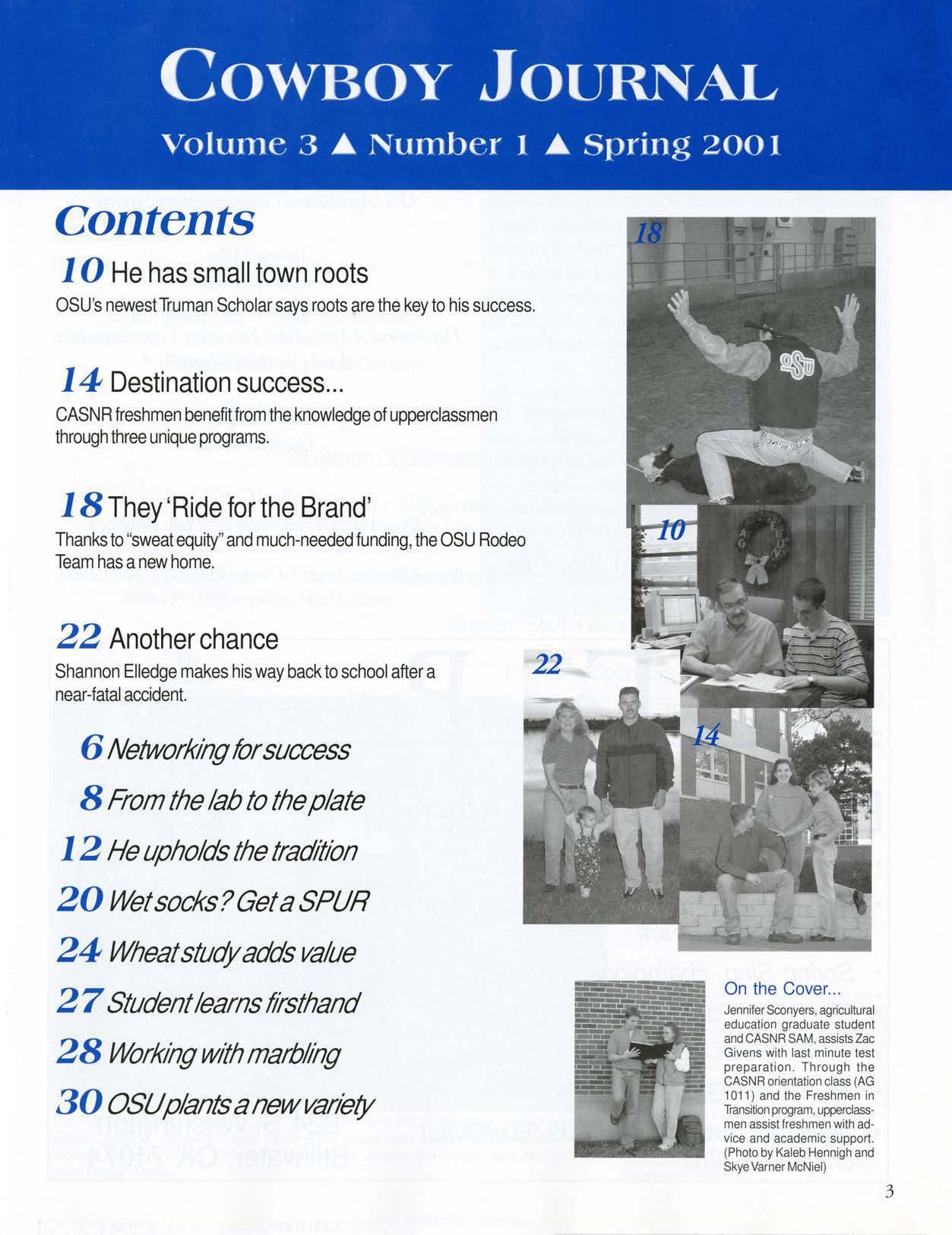 The Cowboyjournalgivesus a chanceto showcaseche skillswe havelearnedthroughout our collegecareers.We representthe traditionof excellenceOSU'sagriculcuralcommunicationsprogramstrive to uphold,and wearegrateful to our professors,administratorsand spon ors for the opportunityro makea differencein the lifeof someoneelse.