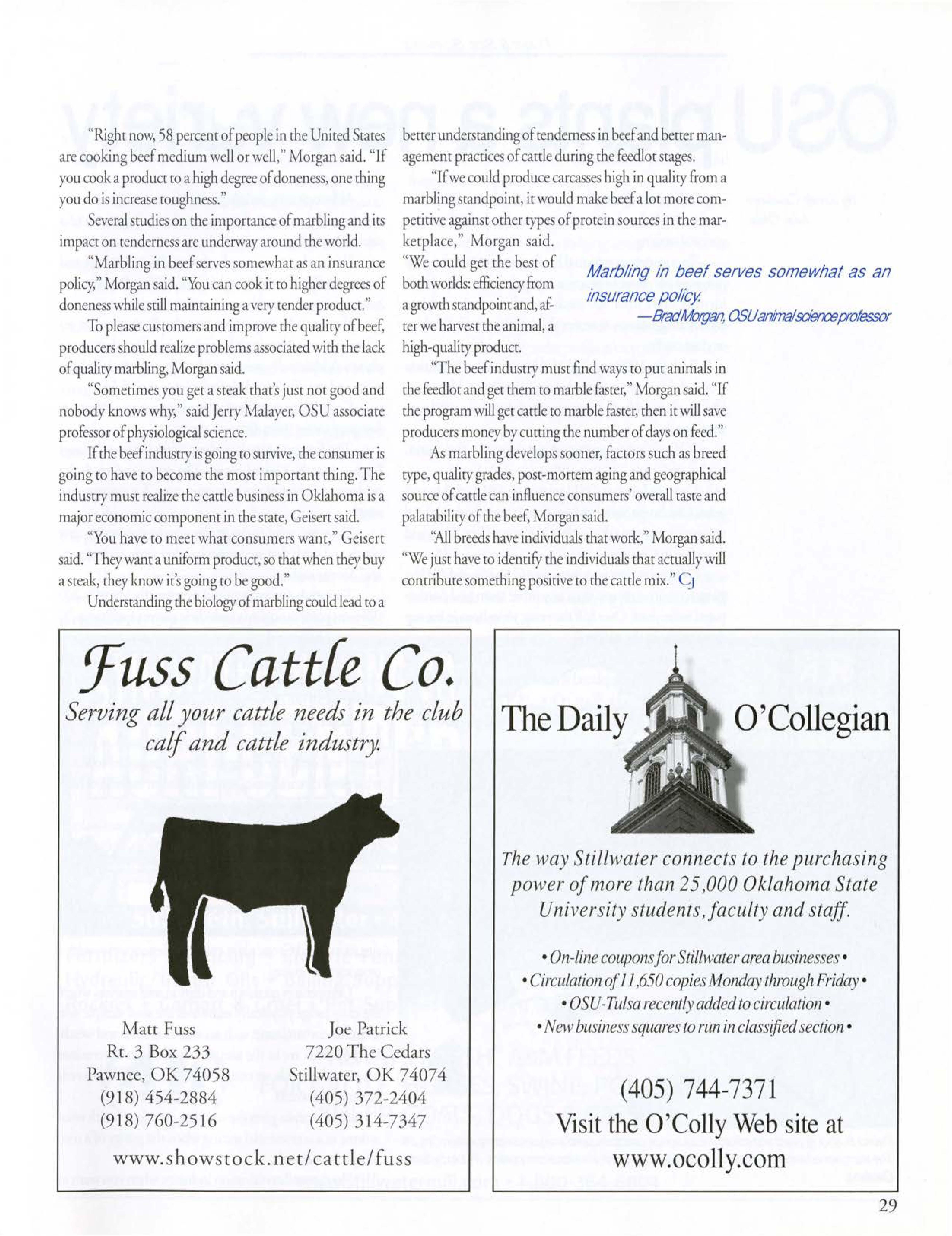 The program i fundedbythe klahomaBeeflndusrry ouncilchroughrhecheckoffprogram.Acon iderable needexistsforproduce to developnewwa roraisehigherqualityanimal to m ec on umer 'd mand , aid Brad organ,0 U animal cienceass iaceprofc or.