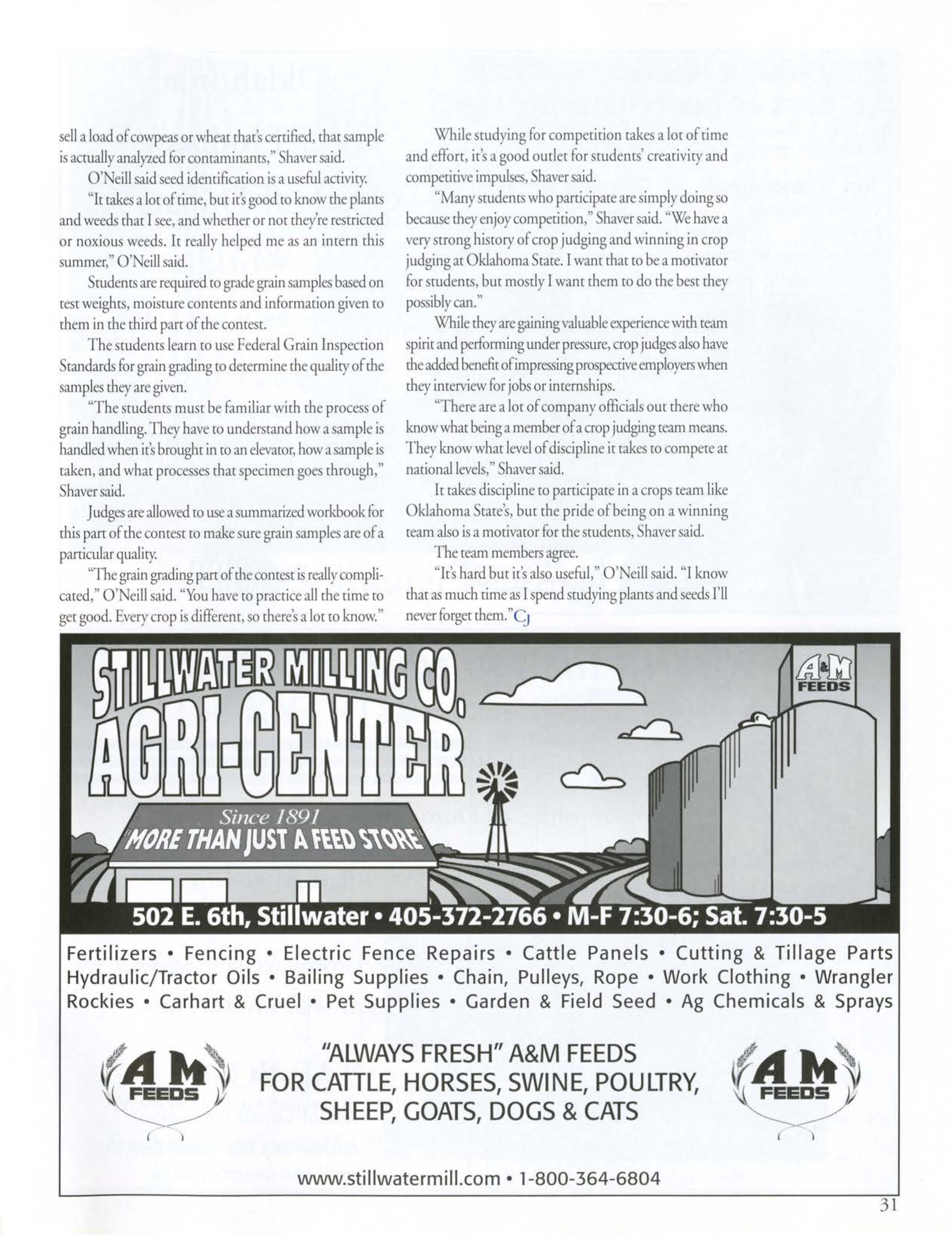 Crop judgingat U tarted in 1923,and for49 years,Oklahoma rarehasbeendominantin bothnational competitions,one takingplacein Kan asCicy,Kan.,and tlieotlierin hicago.