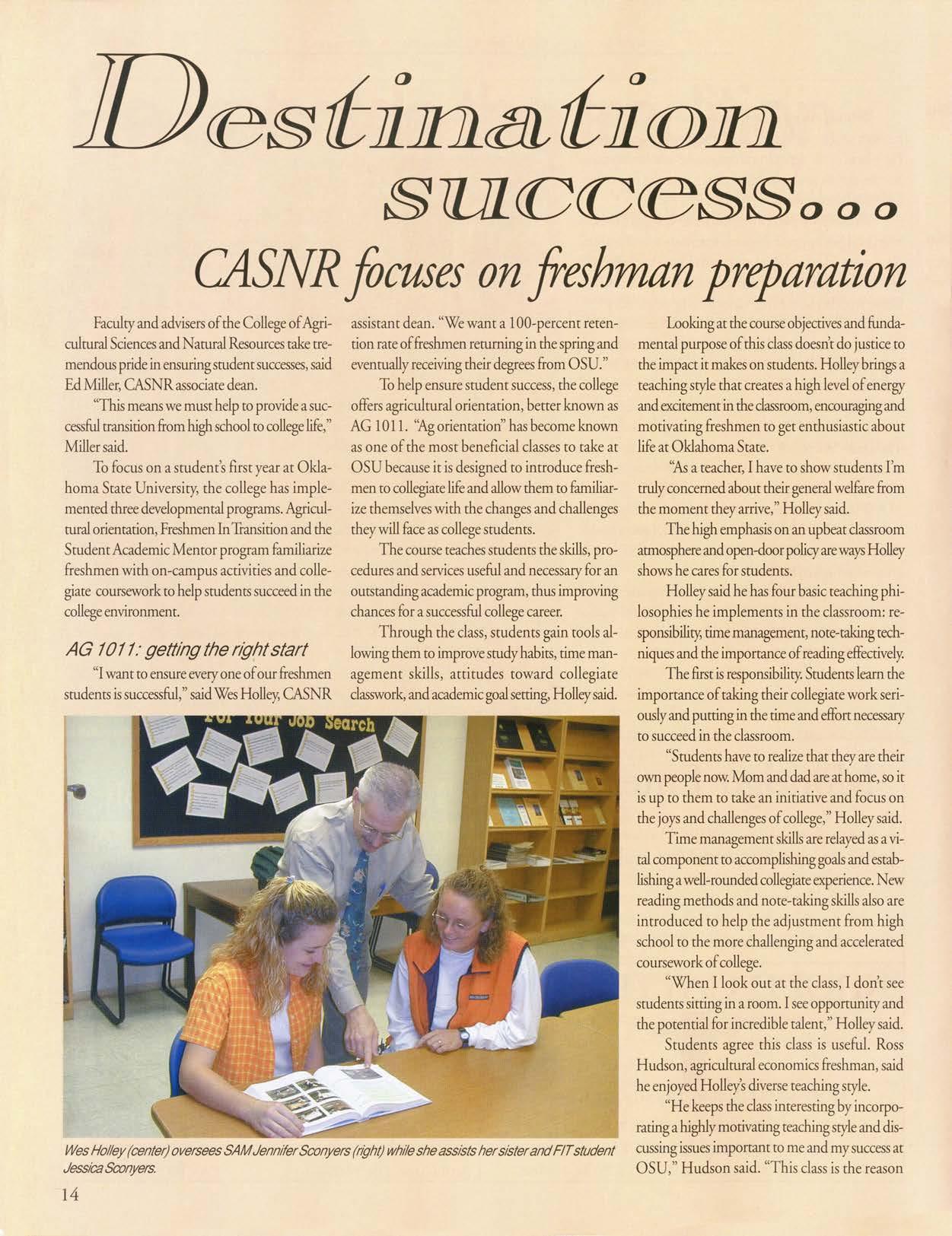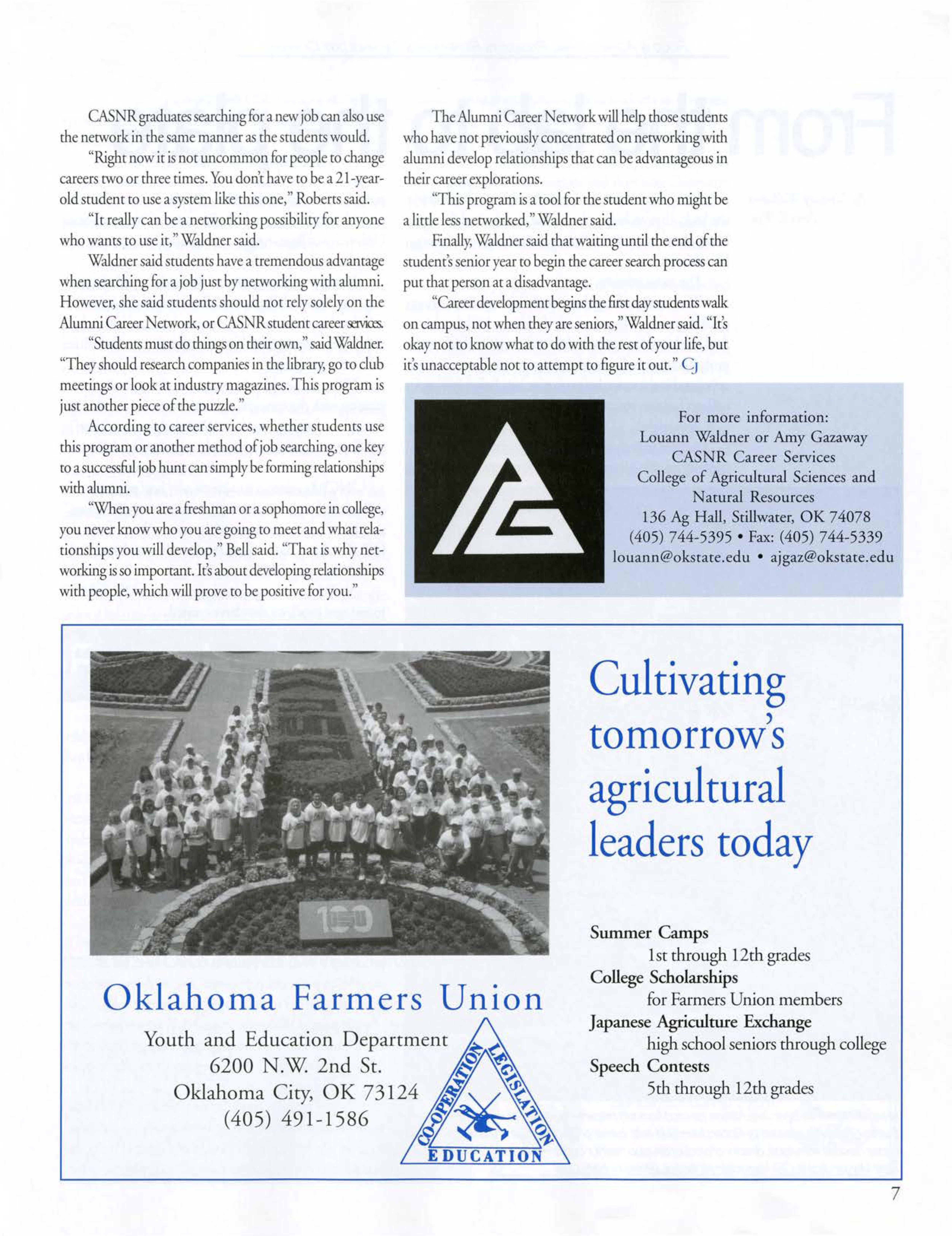 Oklahoma rateUniversitystudentswill oon havea new tool t0 help them makemore informedcareerdecisions.The Collegeof Agriculrural ciencesand atural Resourcesstudent careerserviceswillunveilthe Alumni Career ecworkin the 200l fallsemester.