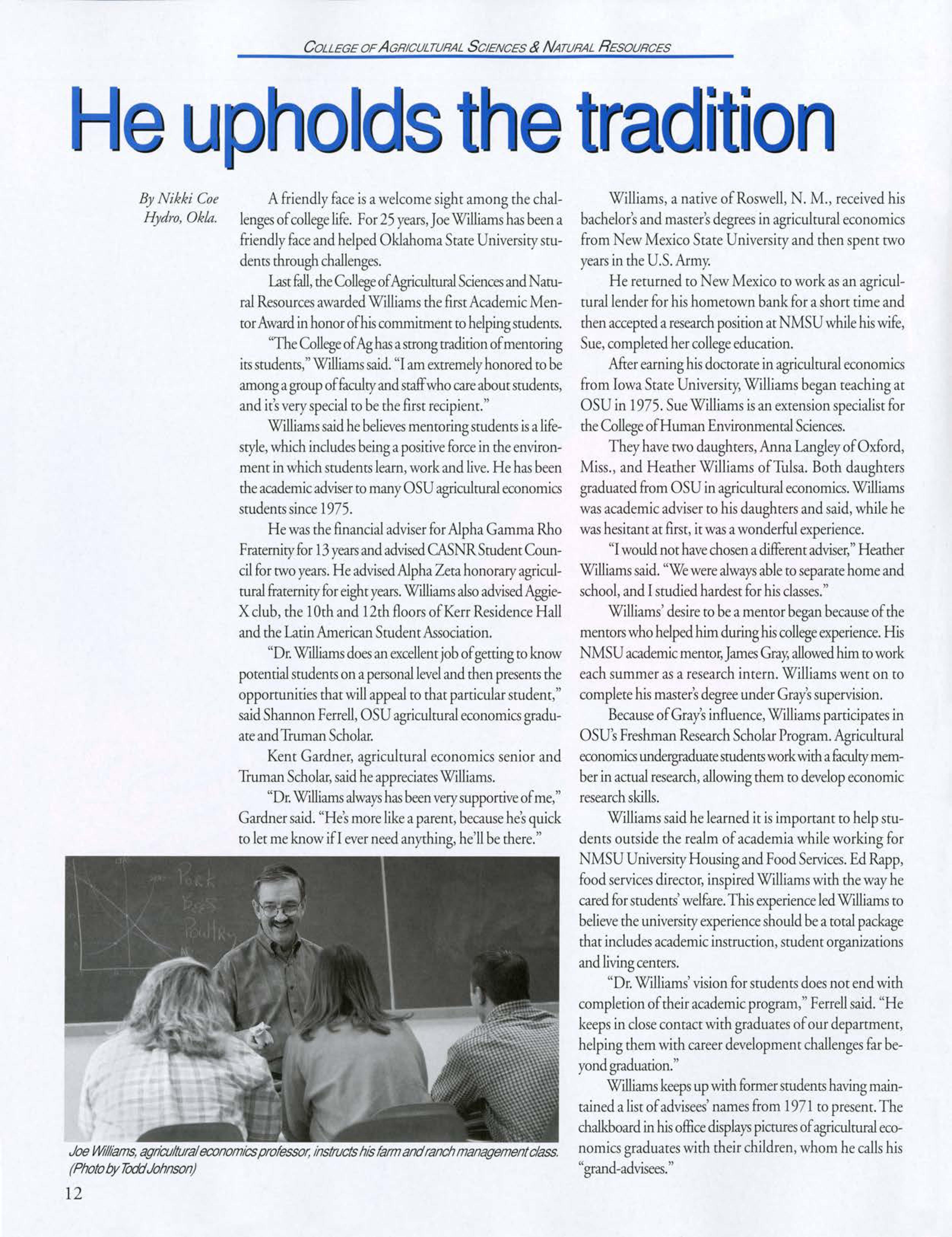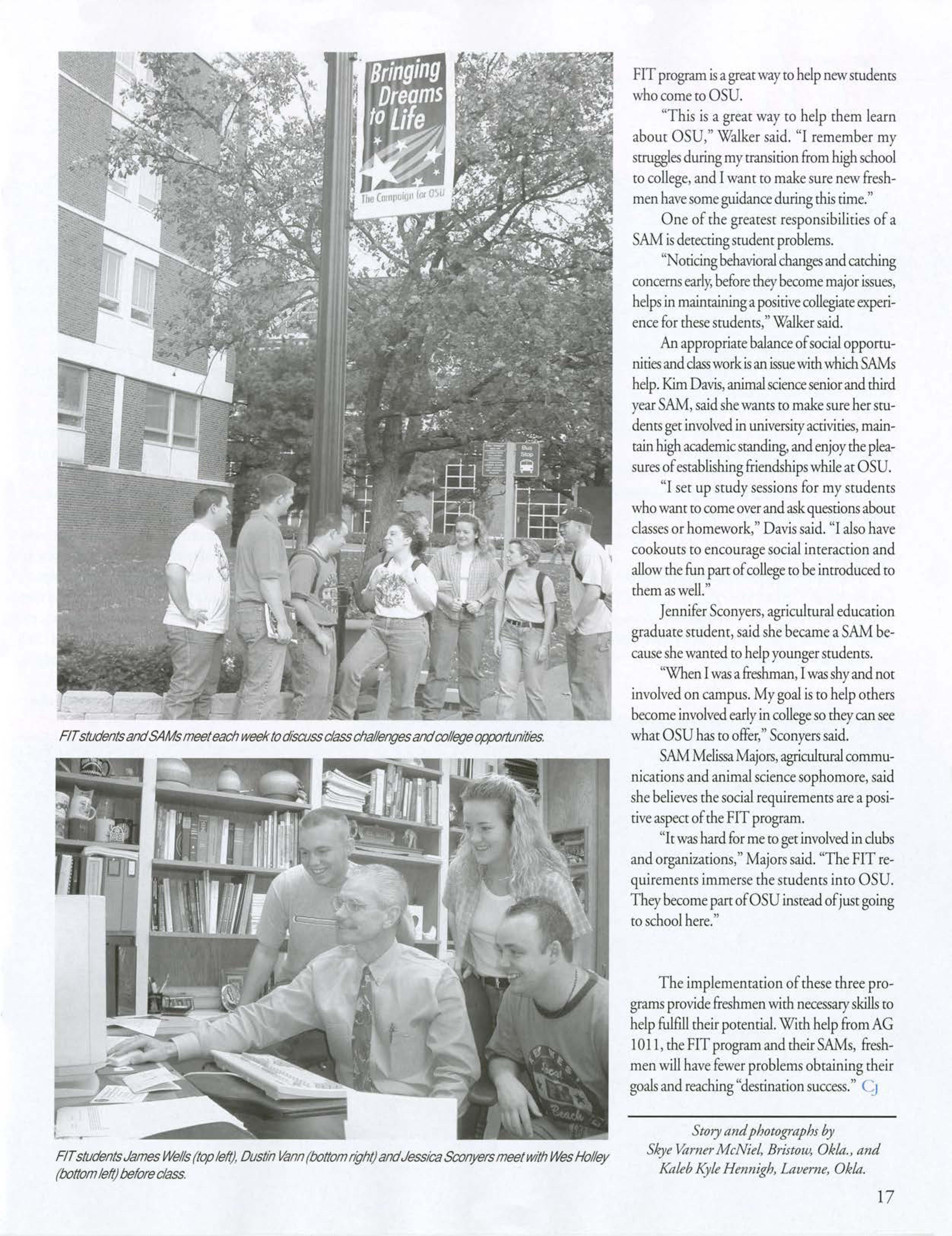 In the lifeof a student,somedaysarebetterthan others, andsomepeoplemakea biggerimpression.This issueof the Cowboyjournalis dedicatedto the teachersand peerswho makea differencein our lives.Whether theyarehelpingus coreachourdestinationofsuccessor givingusanotherchance, it becomesobviousratherquicklychat,withoutour mentors, wewould neverbe whowe are today.Fromencouragingus co"rideforthebrand"to upholdingOSUstraditionof"bringing dreamsto life " our mentorsgiveus more than merely someoneto look up to.They giveus assuranceand the confidencein ourselvesto succeed.