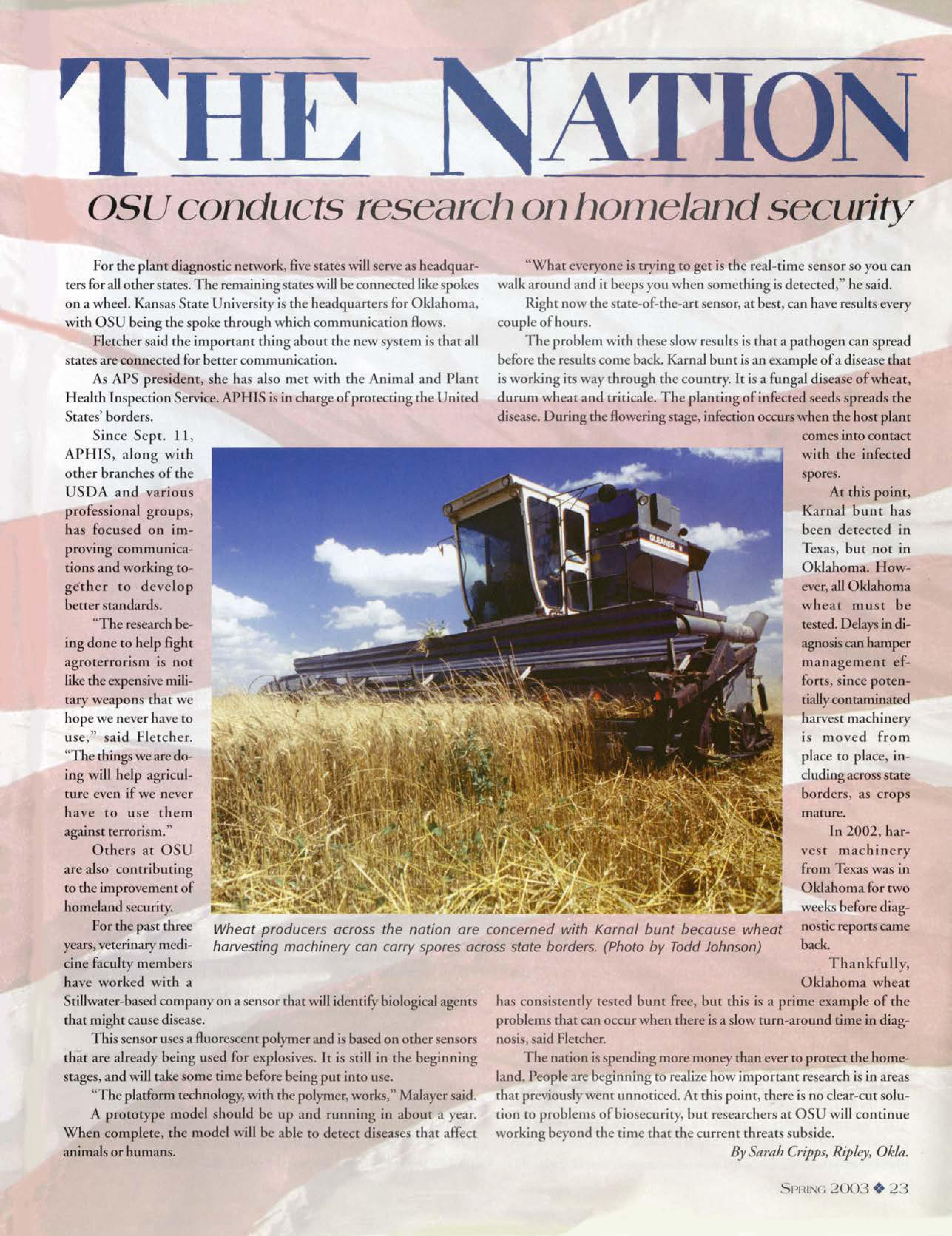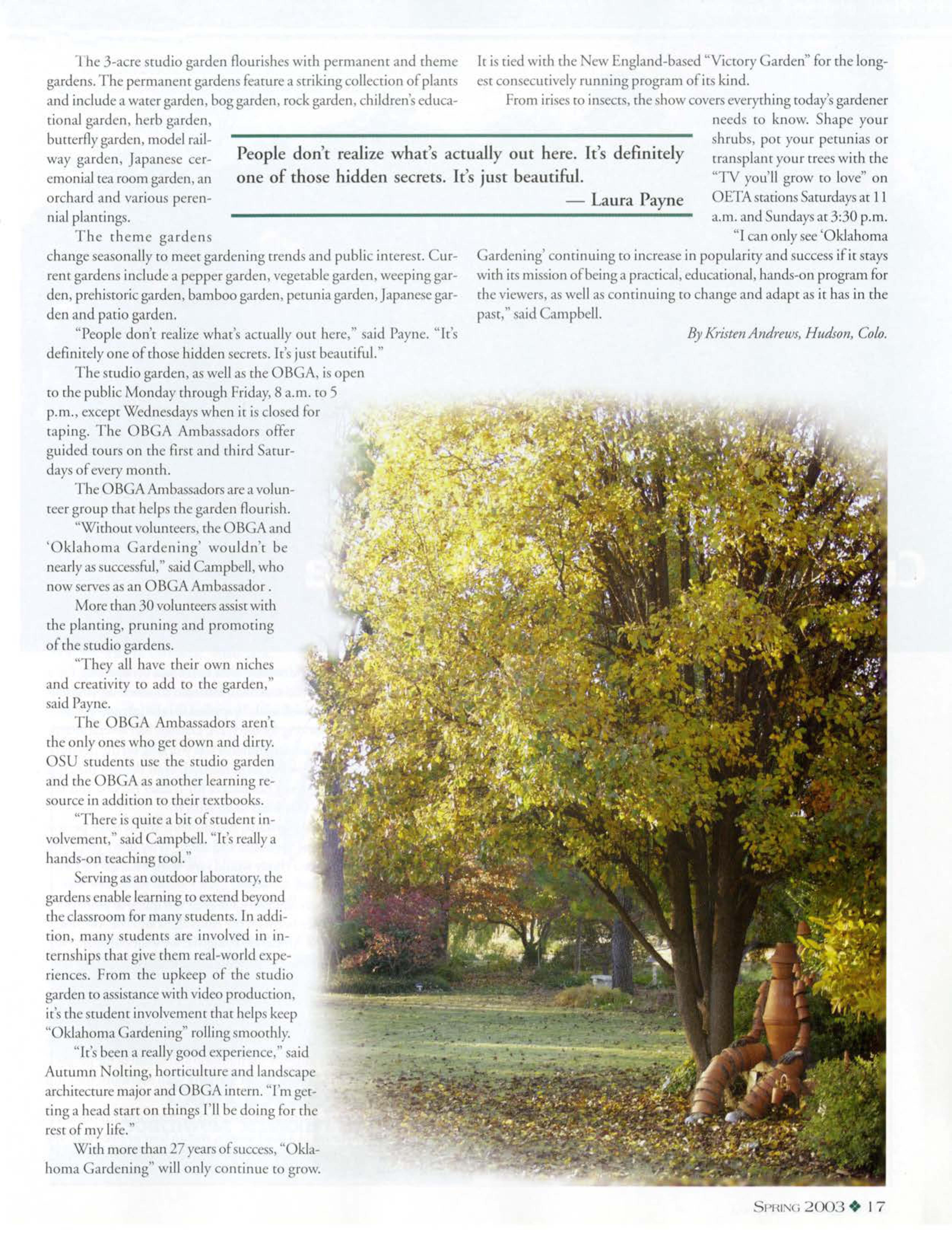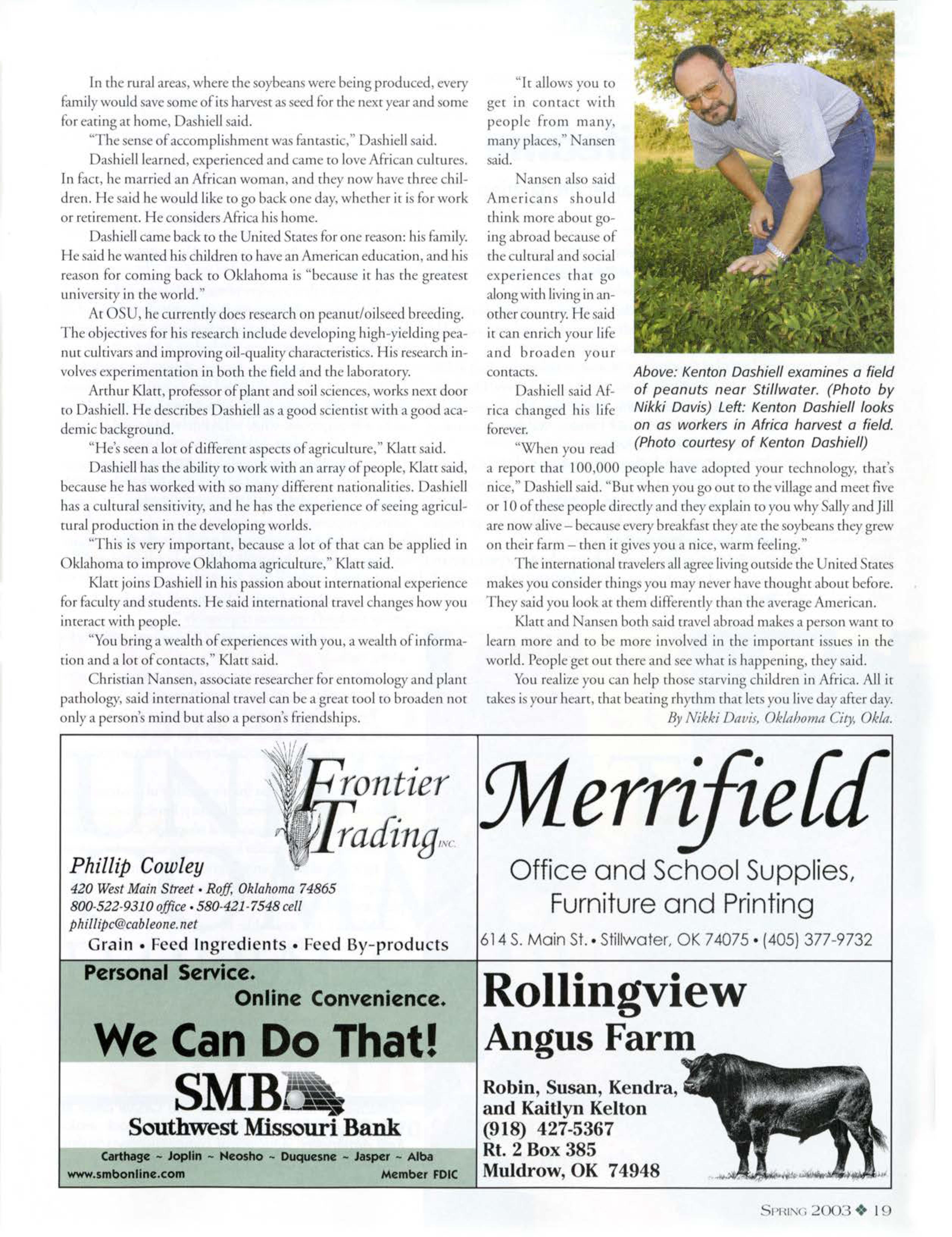 The Oklahoma Agricultural Experimenc ration and lhe Oklahoma Cooperative Exten ion Service, both a part of OSU's Division of AgriculruraJ Sciences and Natural Reources, were inAuencial groups in the revirafo.ation efforts of chis discricr.