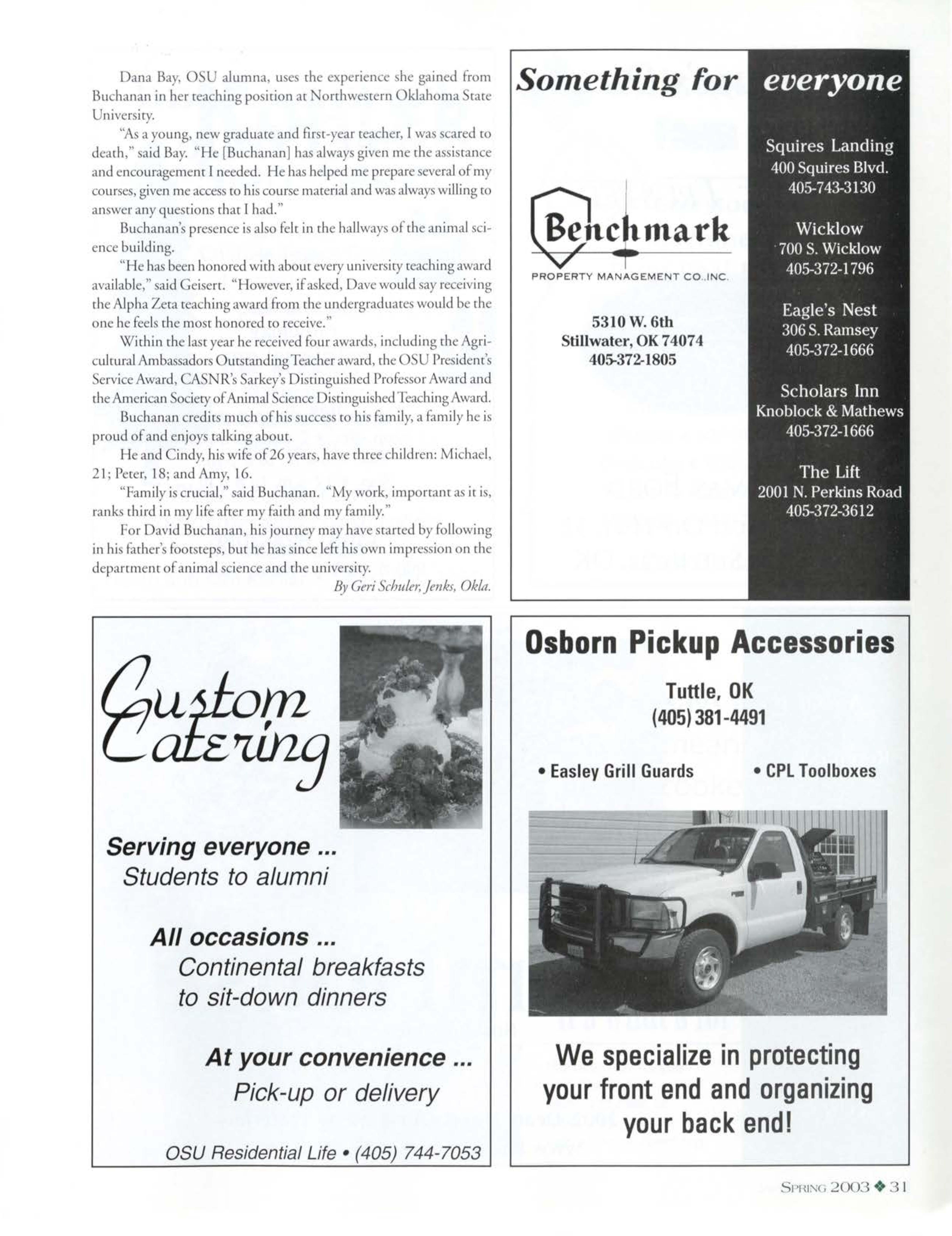 "We want ro retain students in Oklahoma as working professionals, and OSU helps make this possible by allowing people ro fulfill their personal desires of improving their hometown communities. Keeping qualified, energetic people in Oklahoma strcngd1ens our prosperity as a state," said Cosron.