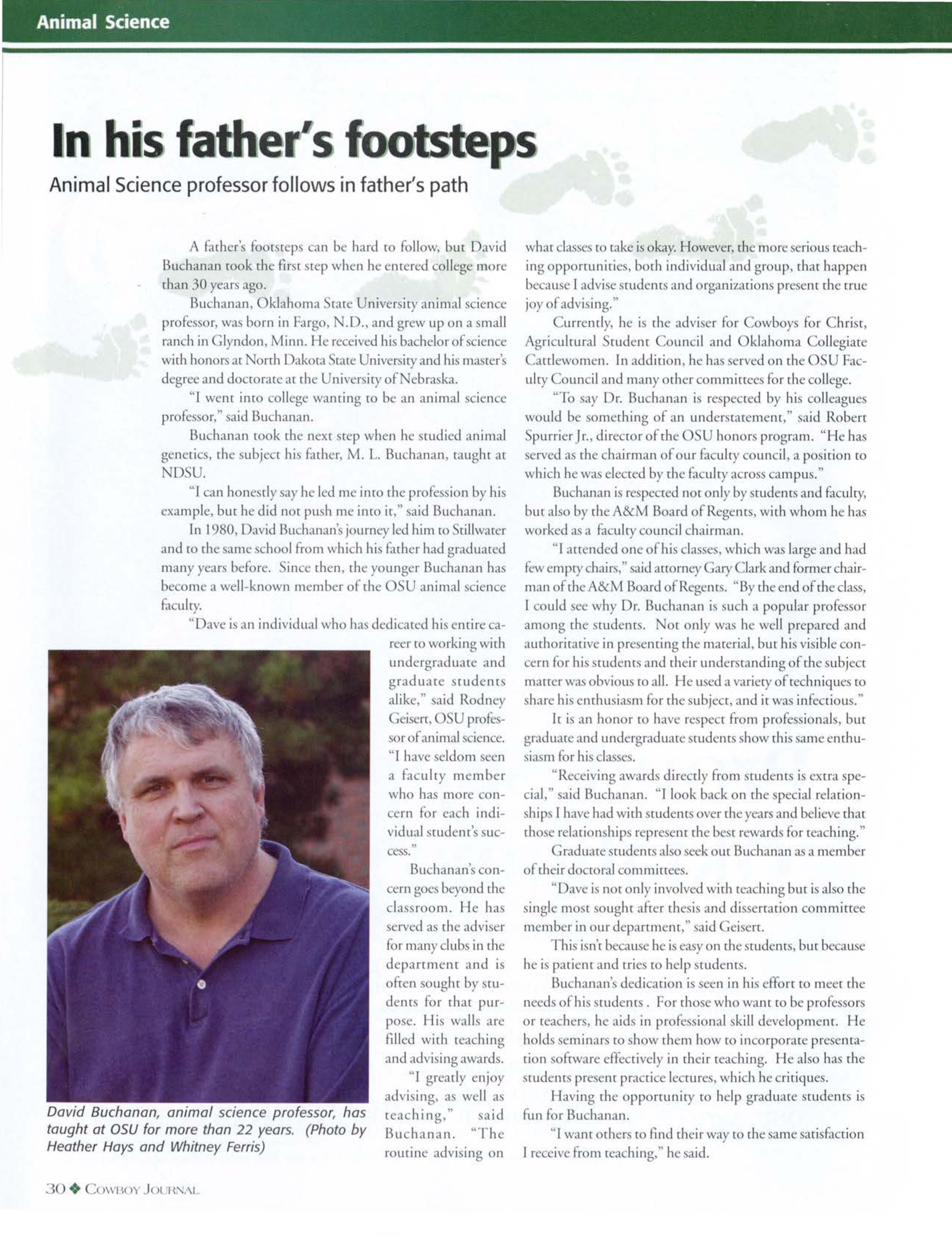 "I alway knew I wanted ro be an agri ulLUraltea her," said Bradshaw.'' y scholar hip en ouraged me Lopursue graduate study in :1griulrural education."
