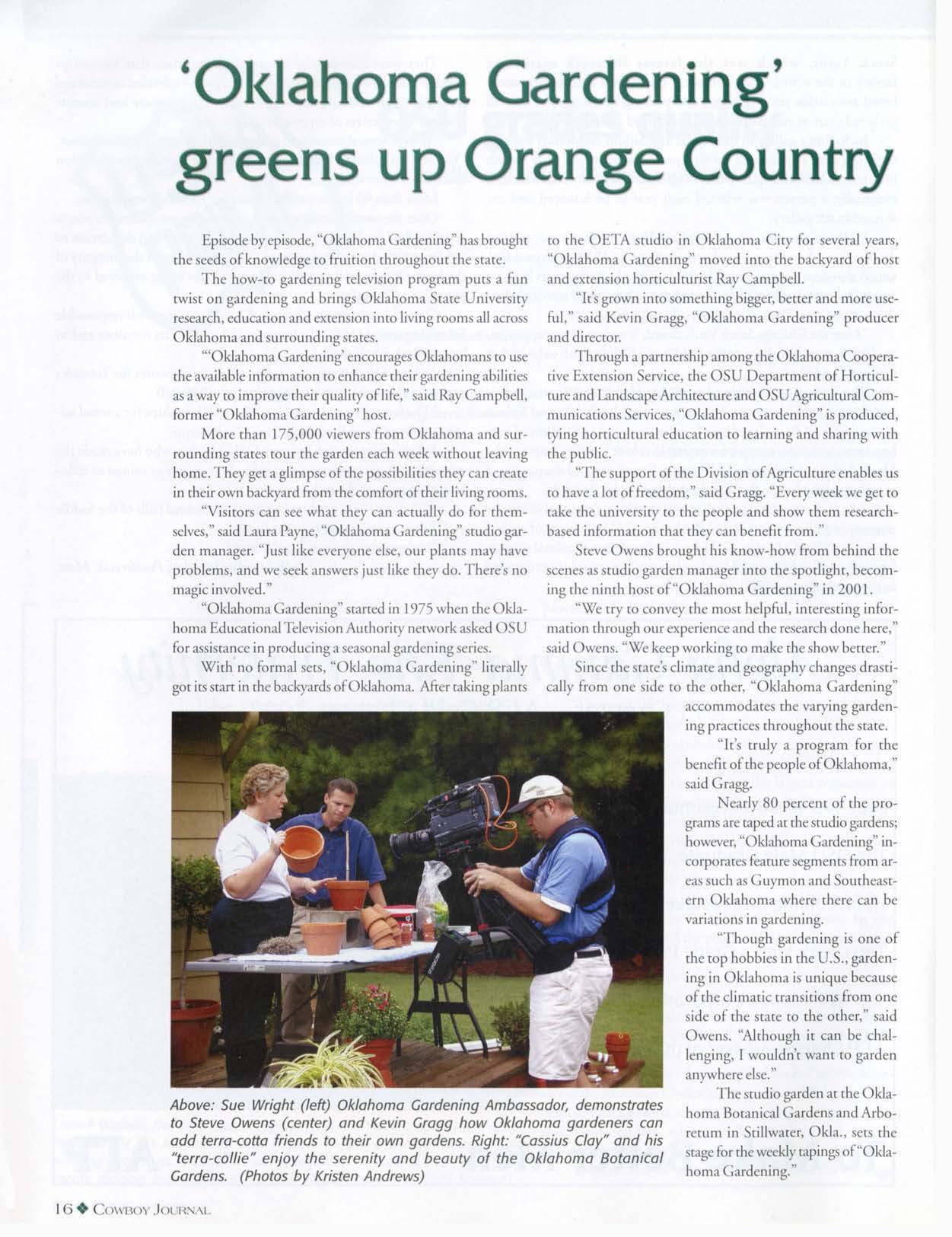 Cooperative efforcs from several Oklal10ma rate University agencies helped rum Cane's vision inro reality.
