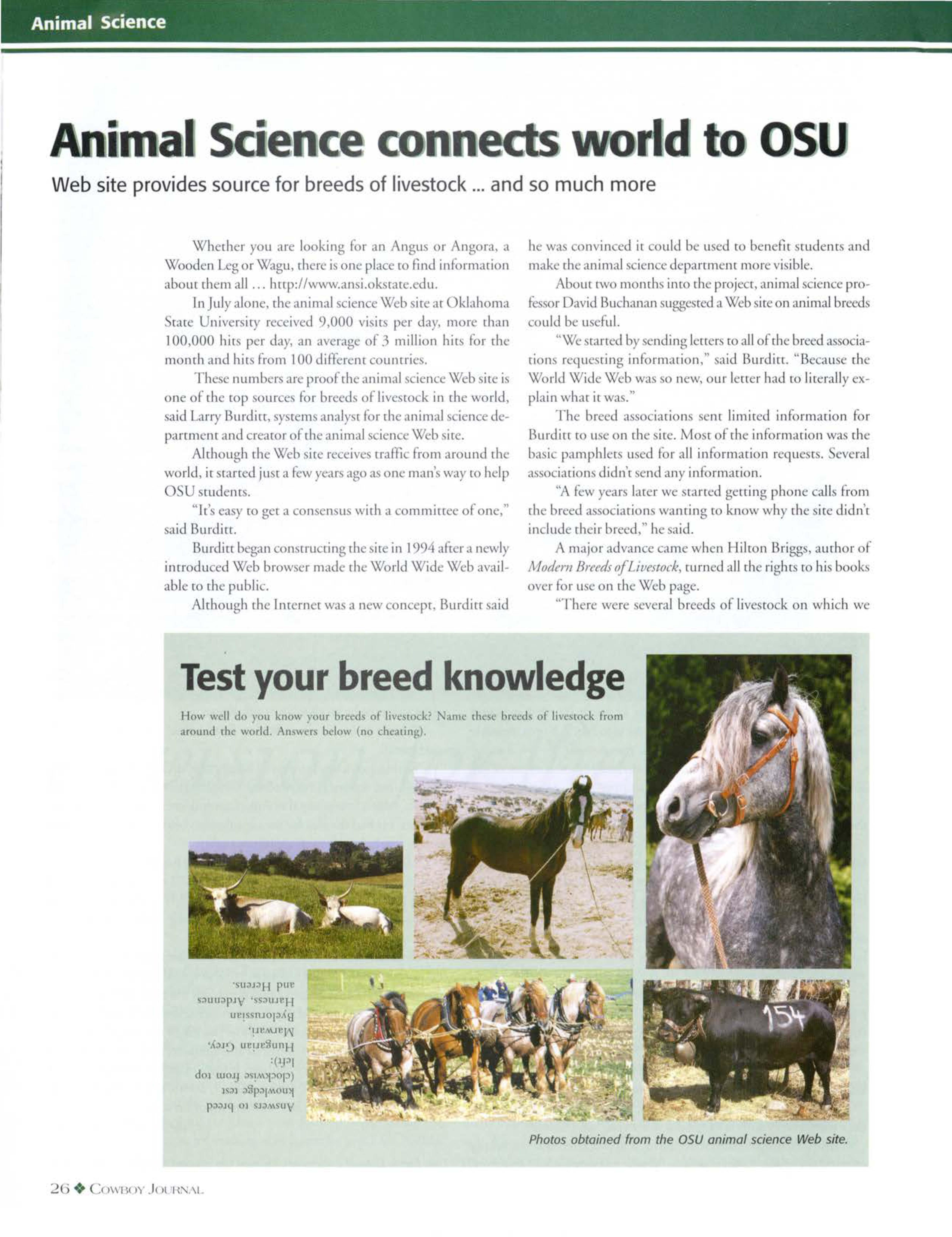 "Evaluating die r e frhe animals we aw livegave me a beuer idea of the relationship berween live trait and carcas traits," aid ace uire, animal cien .cnior.
