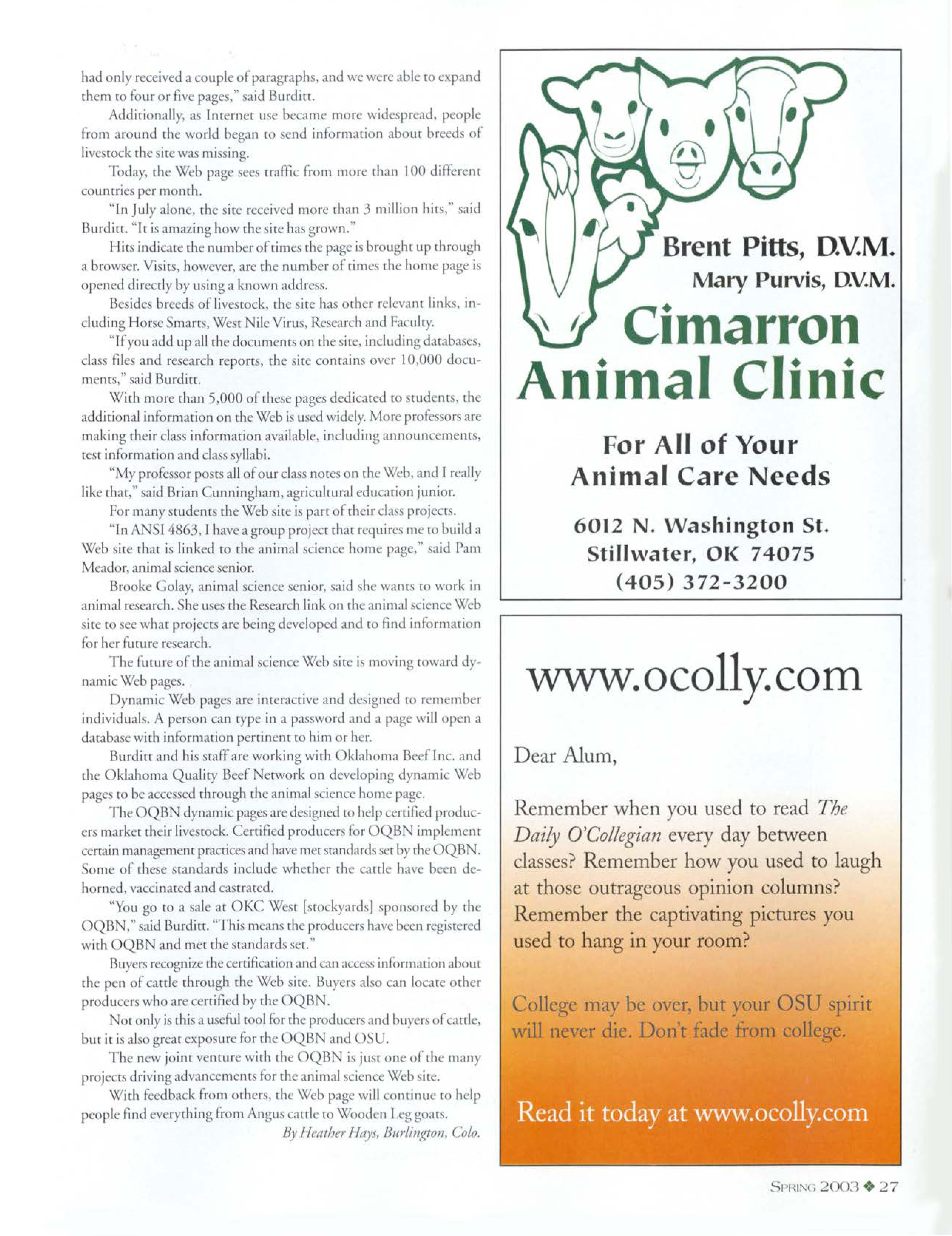 Marcin is a new member co che tea.inar O U, beginni11g her position during the summer of 2002. As assi rant dean for academic programs, Martin is pursuing a new role in her career. Her role is one of enhancing academics within agri ulrure and providing as isrance a.11d upporr ro the O U rudenr body.