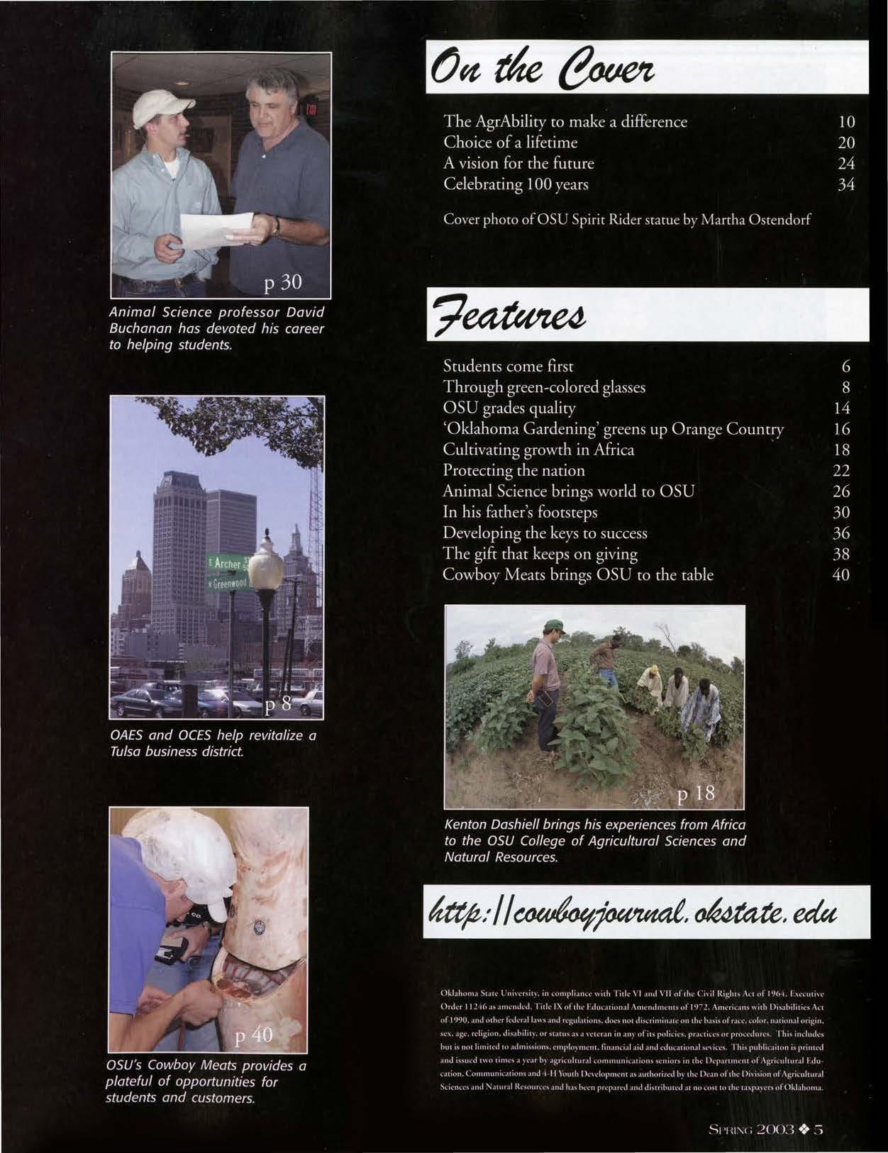 "Because O U was developed as a land-gram univer ity, the OAE and O E place significanr importance on celebrating che heritage char makes chi university o unique," aid D.C. Coscon, AE a ociate direccor and former incerim associate director of OC "Our programs strive co establi ha strong economic base and improvement opporcu-