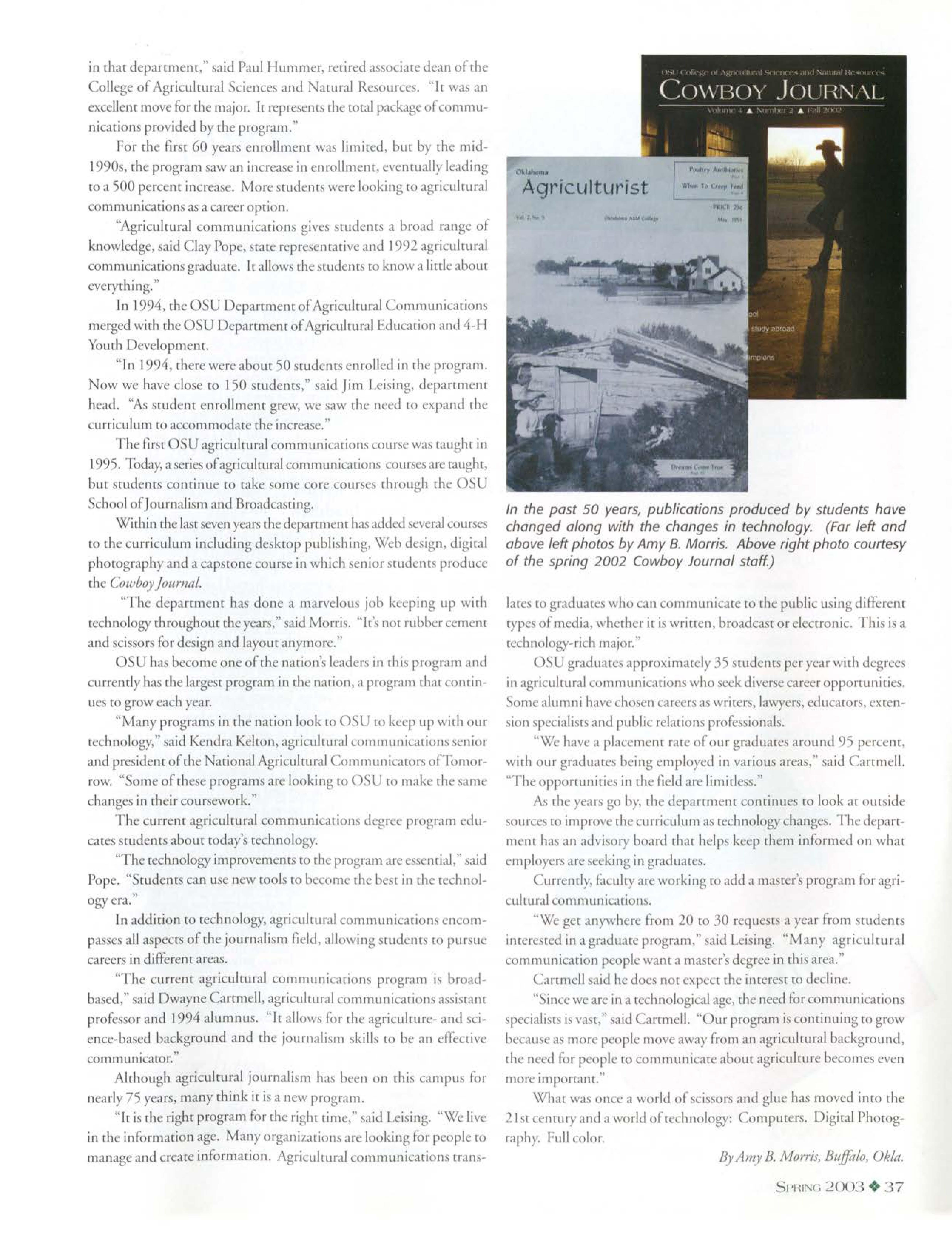 As agriculmre continues ro evolve inco more of a service industry, Coston said, there is an increased number of virally important skills OSU must instill within students. These include the ability to apply technical skills, increase emphasis beyond the technological field, and enhance communications, public speaking, managemenr and leadership.