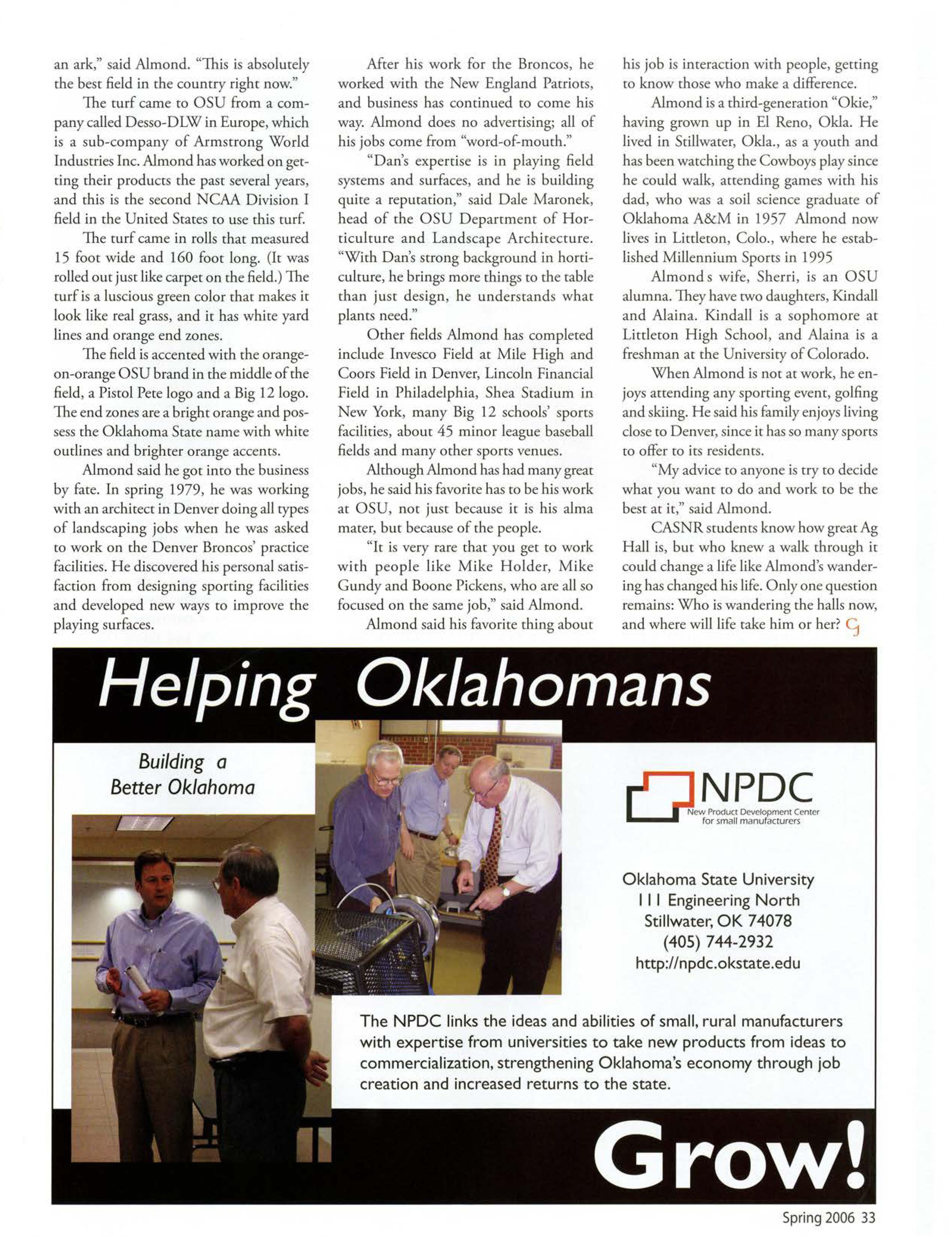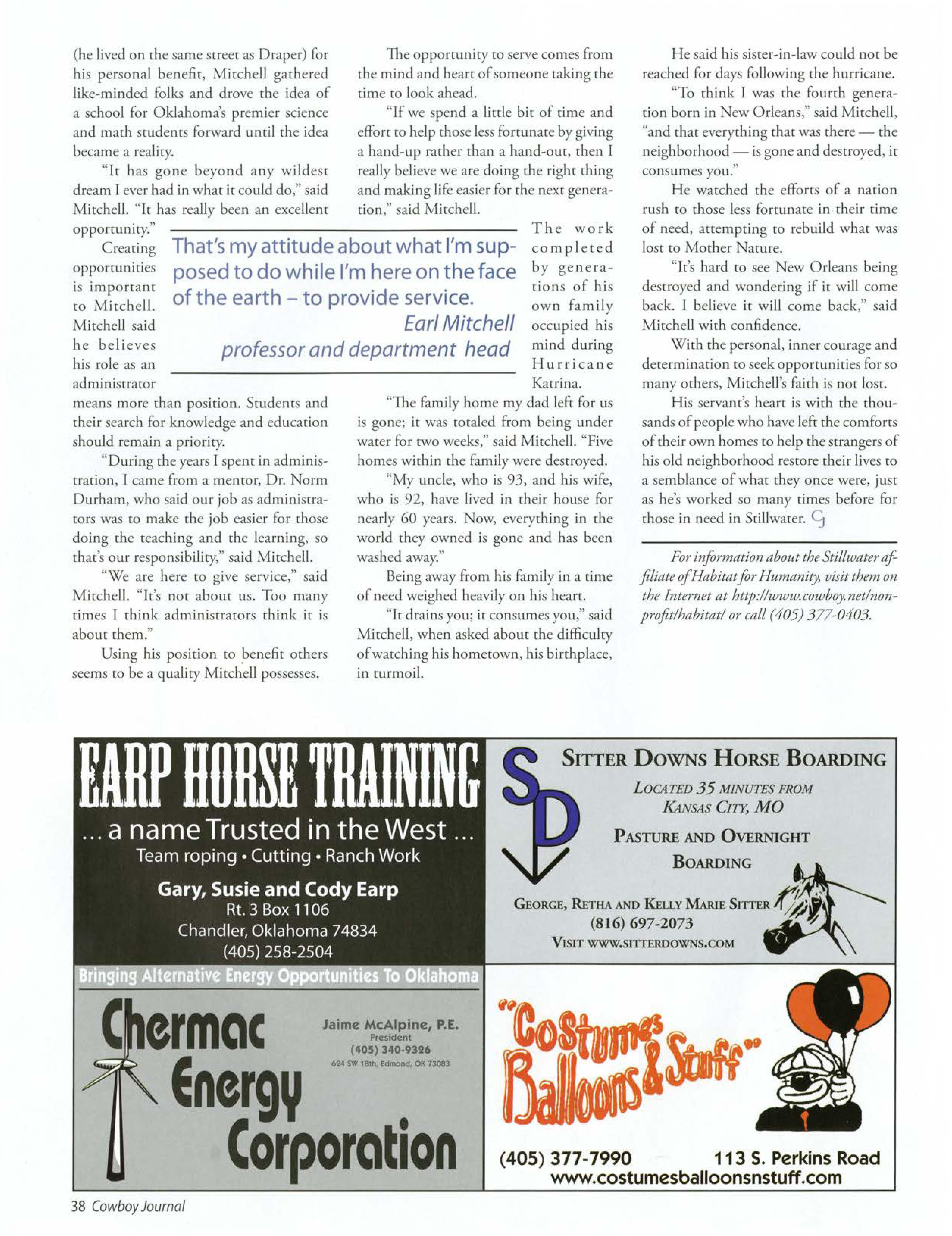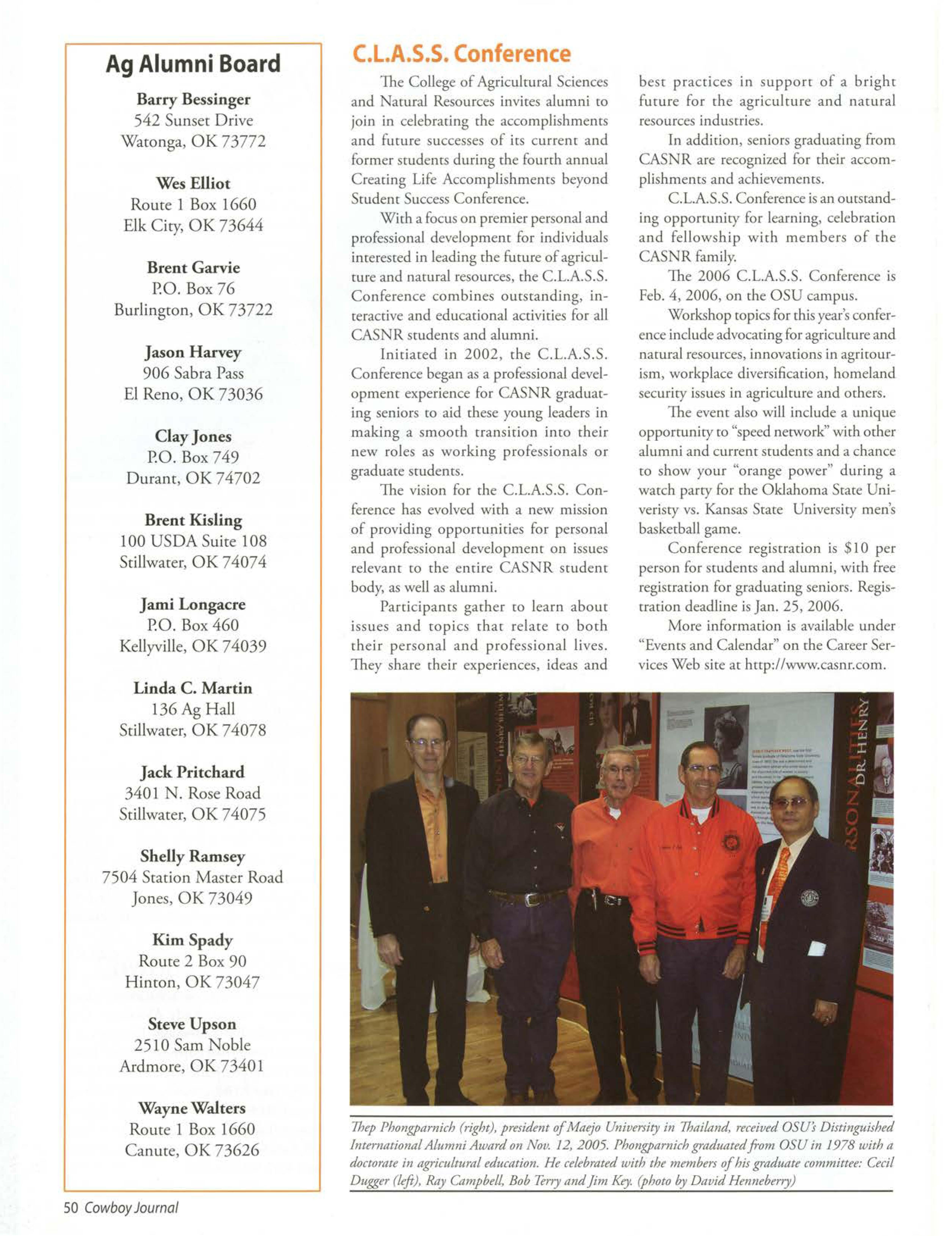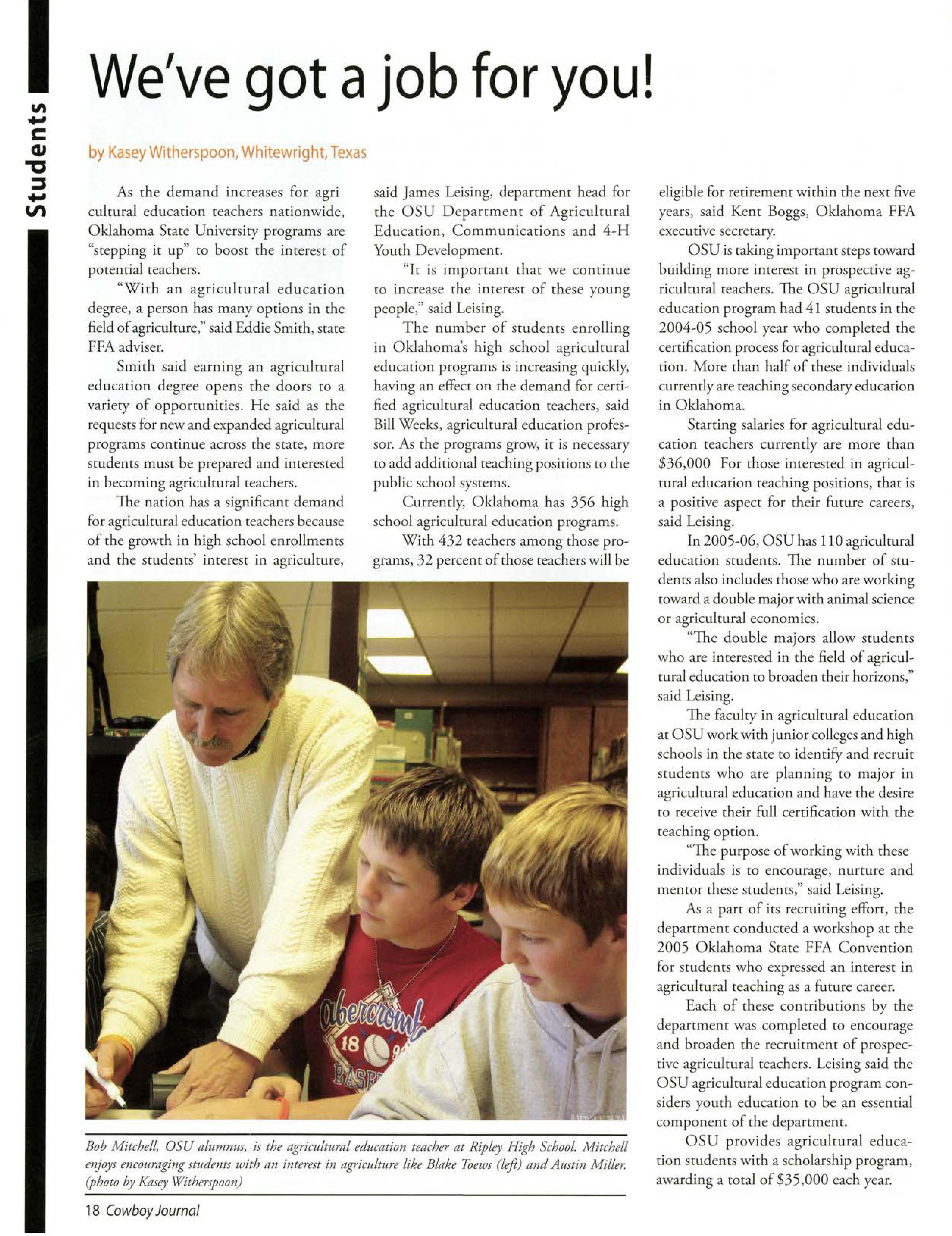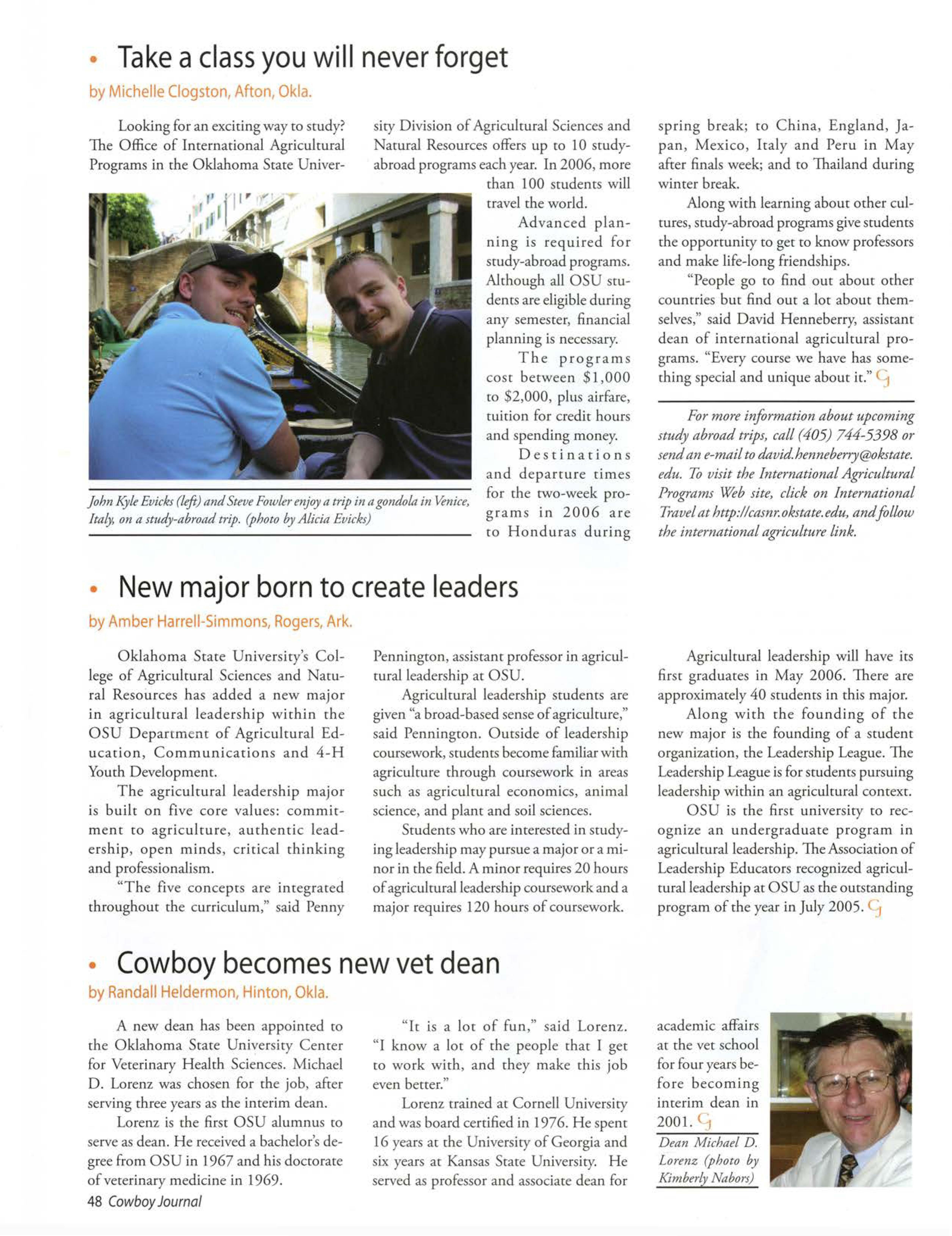 OSU gained national attention when one of our students was electedpresident of the National FFA Organization.TravisJett, an agribusiness/pre-lawjunior from Laverne Okla., saw his dream becomereality when he was electedto the office Oct. 29, 2005. He will take a year off of schoolto travel the countryto meet with FFA members,agricultitre teachers,FFA supporters,and business, governmentand educationleaders.