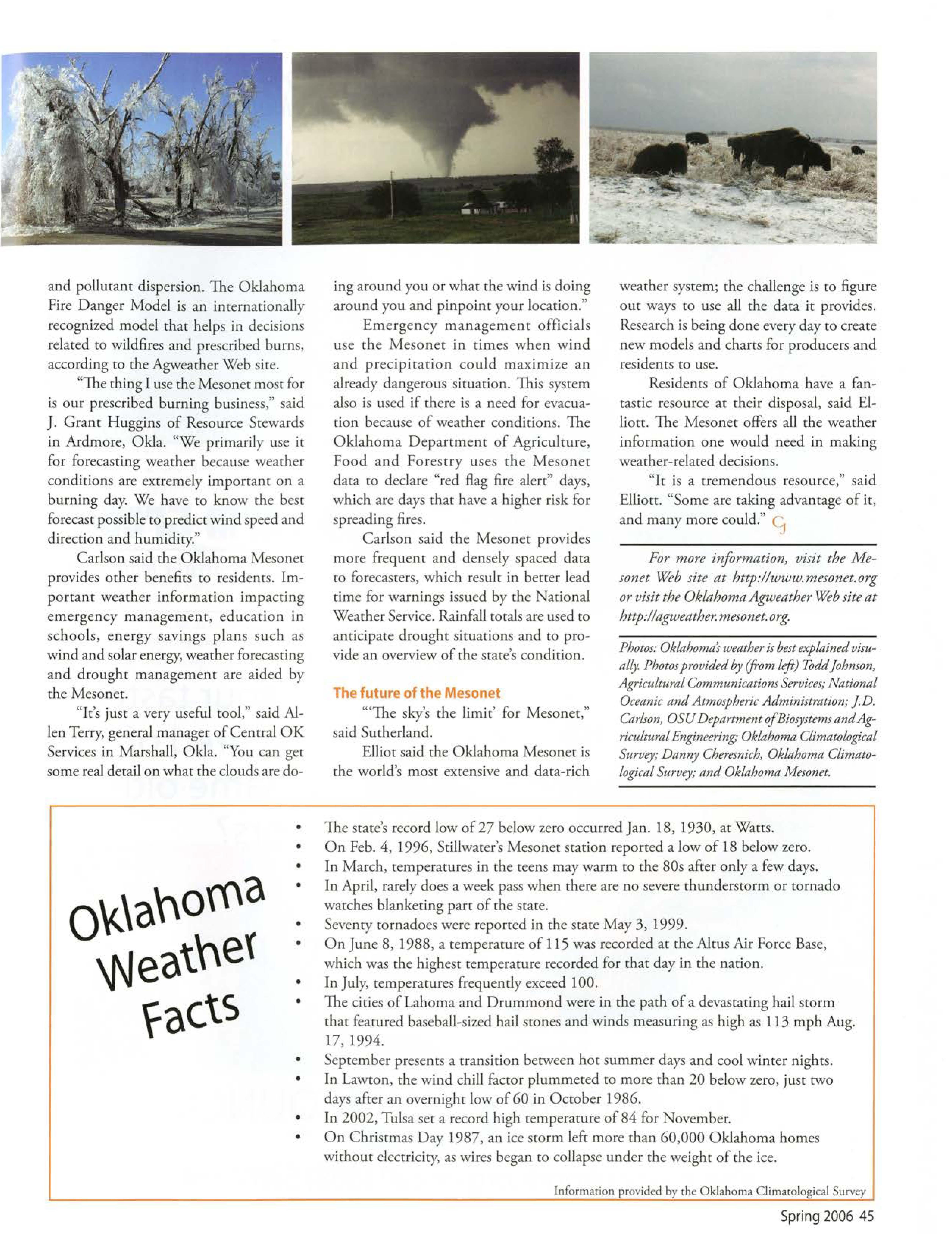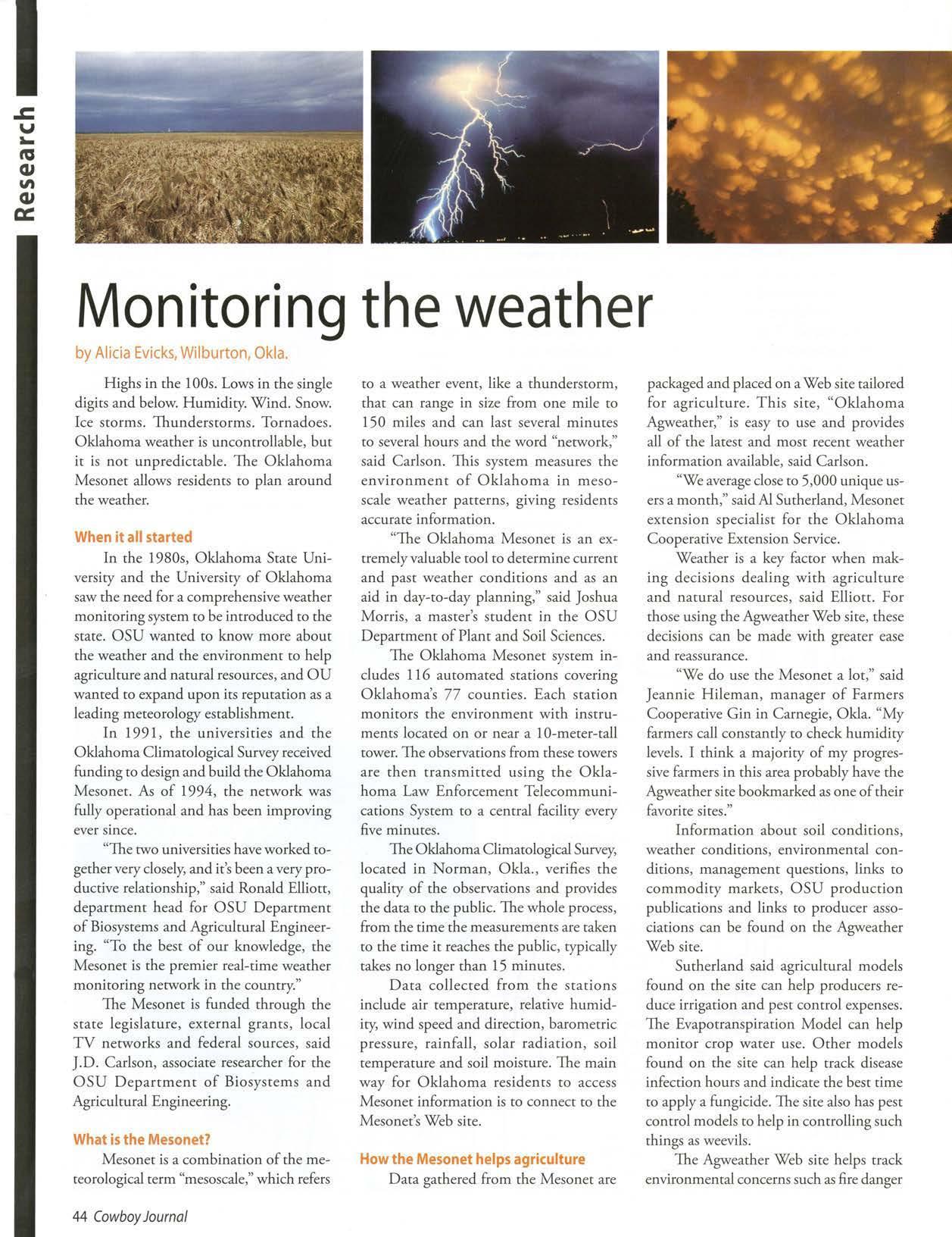 The Oklahoma Mesonet monirors rhe weather