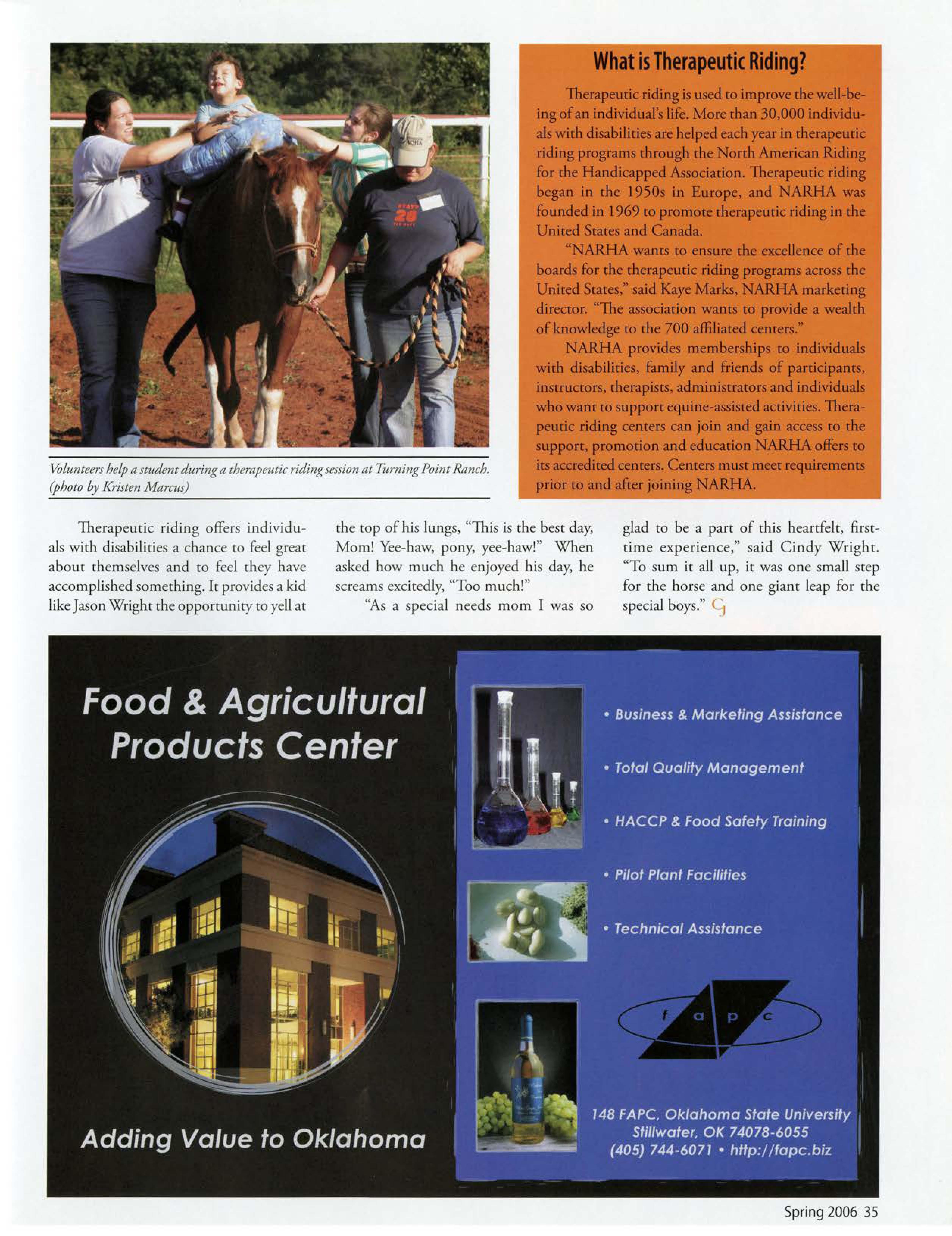 Thanks to a significant increase in recurringfunding provided by the 2005 Oklahomalegislaturefor researchand coop-