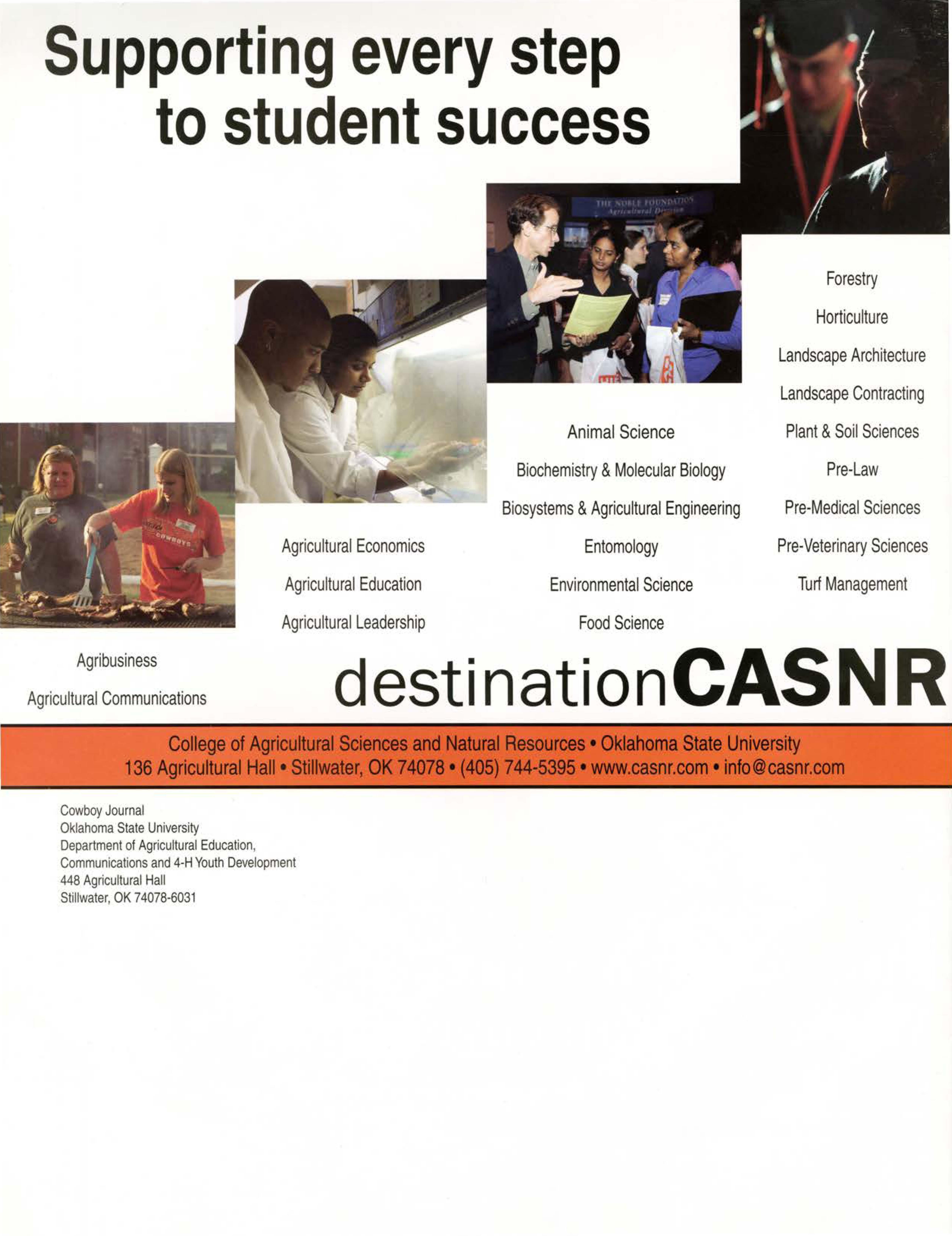 For more information on Student SuccessCenteractivities,orfor moreinformation on becominga sponsor,call(405) 744-5395. Tolearnmoreabout CASNR CareerServices resourcesvisit http://www.casnrcom.