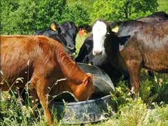 Understanding solutions to managing heat stress begins with understanding the problem. Cattle have difficulty dissipating heat effectively because they don’t sweat as well as other animals. Since they don’t sweat well, cattle dissipate heat by increasing their respiration rate, decreasing their activity, dilating their blood vessels near their skin so they can more effectively radiate the heat from their body, and eating less. Eating and digestion generates heat so they intake less feed to reduce the internal blood temperature. In Kentucky, and the rest of the “fescue belt,” heat stress is heightened by consuming endophyte-infected fescue. Endophyte is a fungus that grows in fescue plants, and this fungus produces chemicals, generically called alkaloids that have a variety of negative impacts on animals. One of the main impacts of consumption of endophyte-infected fescue is the alkaloids constrict the blood vessels of the animal, which reduces its ability to dissipate heat via radiation. So, if we want to alleviate issues with heat stress, we need to find management protocols to help cattle dissipate heat. Fortunately, we have options! Logically, the first place to start is simply do not graze endophyteinfected fescue during the summer, but this is often not a viable option for many cattle producers. The breeding season can be shifted to earlier in the spring (April – June vs. May –August), but this will lead to cows calving earlier in the winter, which may not be an acceptable option either. Supplementing with high fat supplements (ex. whole soybeans, liquid fats supplements, distiller's products) during heat stress can increase pregnancy rates in beef cows. Providing a complete mineral mix containing a blend of sodium selenite and selenium yeast, like the UK Beef IRM mineral, has been shown to increase hormone concentrations
