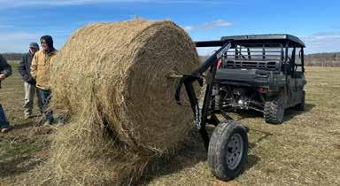 • Feed hay in areas where mud is less of a problem. Consider preparing a feeding area with gravel over geotextile fabric or maybe a concrete feeding pad. Bale grazing is an option for producers to help control mud while spreading nutrients across pastures.