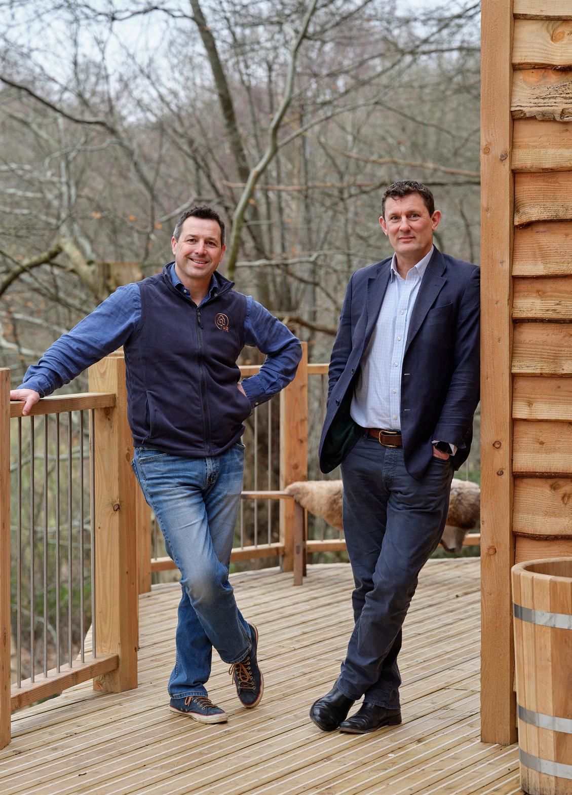 Adam Coxen, Founder of Tree House Retreats (left) and Jonathan Russell, Cowdray’s CEO (right)