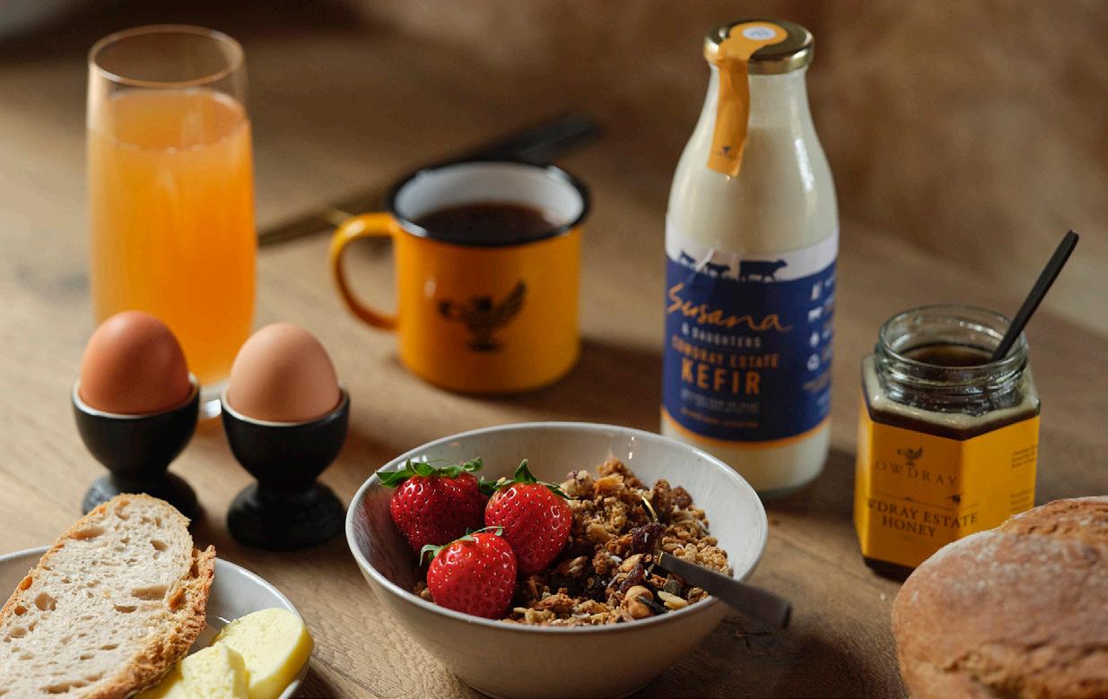 Each guest receives a welcome hamper from the Cowdray Farm Shop stocked with locally produced food and drink such as honey from hives on the Estate, seasonal fruit and vegetables and baked goods made onsite.