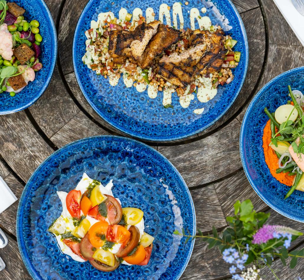 The Cowdray Café is popular all year round but in summer visitors, walkers and polo spectators make the most of the large sunny terrace to enjoy a drink and a bite to eat. There is a range of new dishes on the menu this summer including Cold Poached salmon with Romesco sauce and King Prawns with Sobrasado, butter beans and capers. Firm favourites also remain such as the Cowdray beef burger or the grilled Halloumi burger.